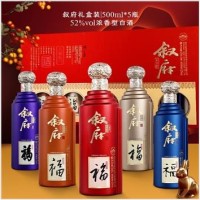 叙府五福临门 52度 浓香型白酒 礼盒装 婚宴喜酒商务送礼酒 500mL*5瓶 礼盒装
