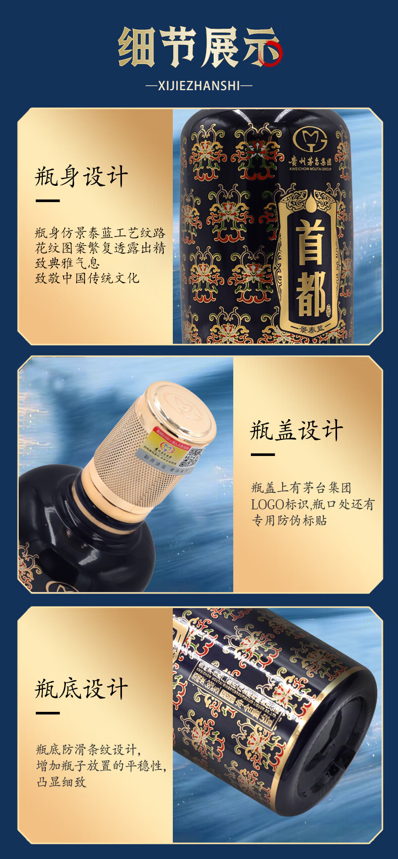 茅台集团 首都景泰蓝 38度 浓香型白酒 500ml*6瓶 整箱