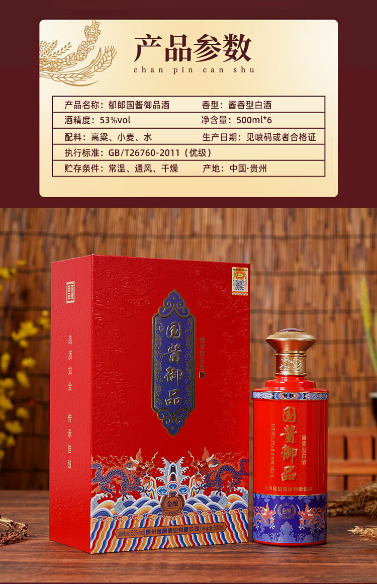 国酱御品酒 鸿运 53度 酱香型白酒 国标优级精美书本盒 500ml*6盒 整箱
