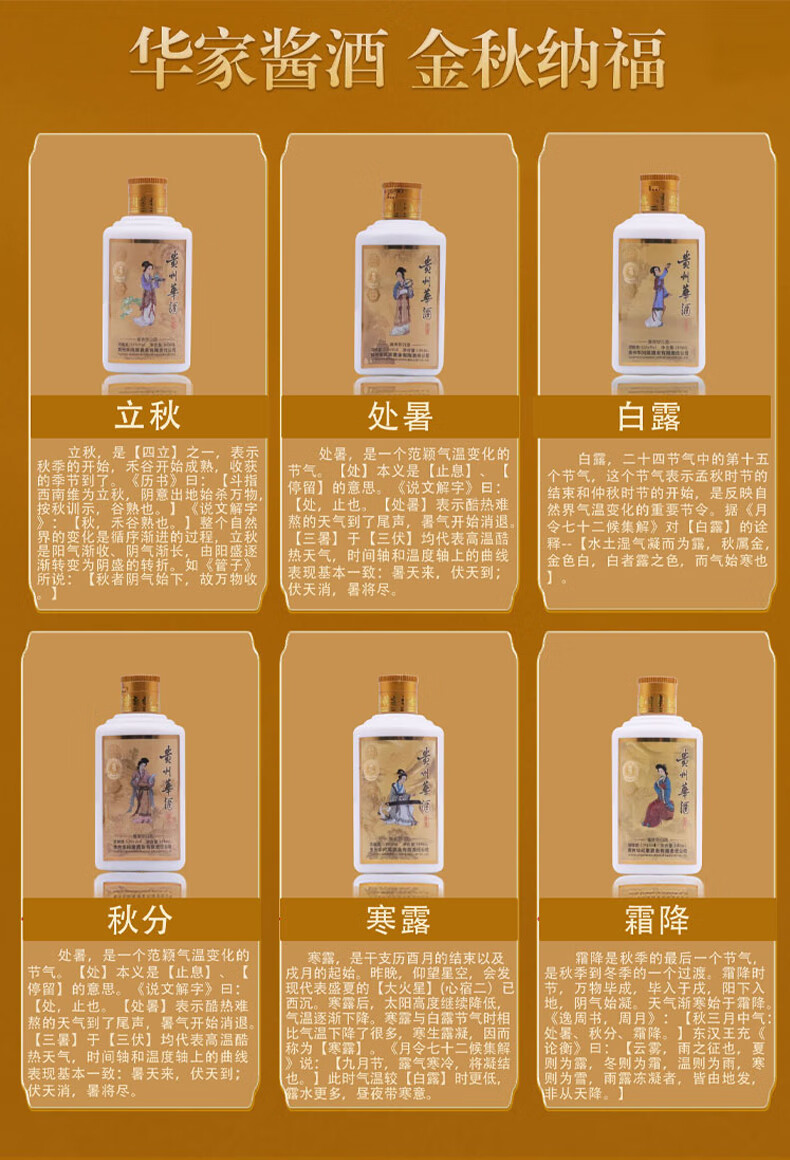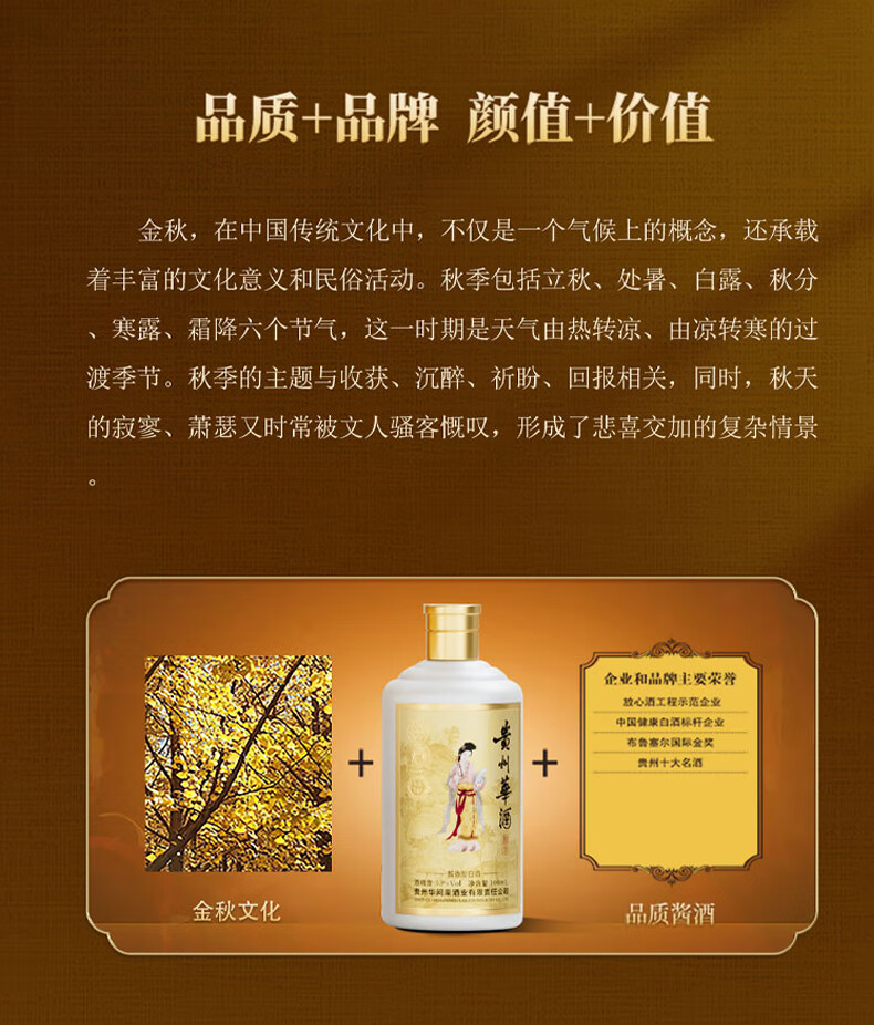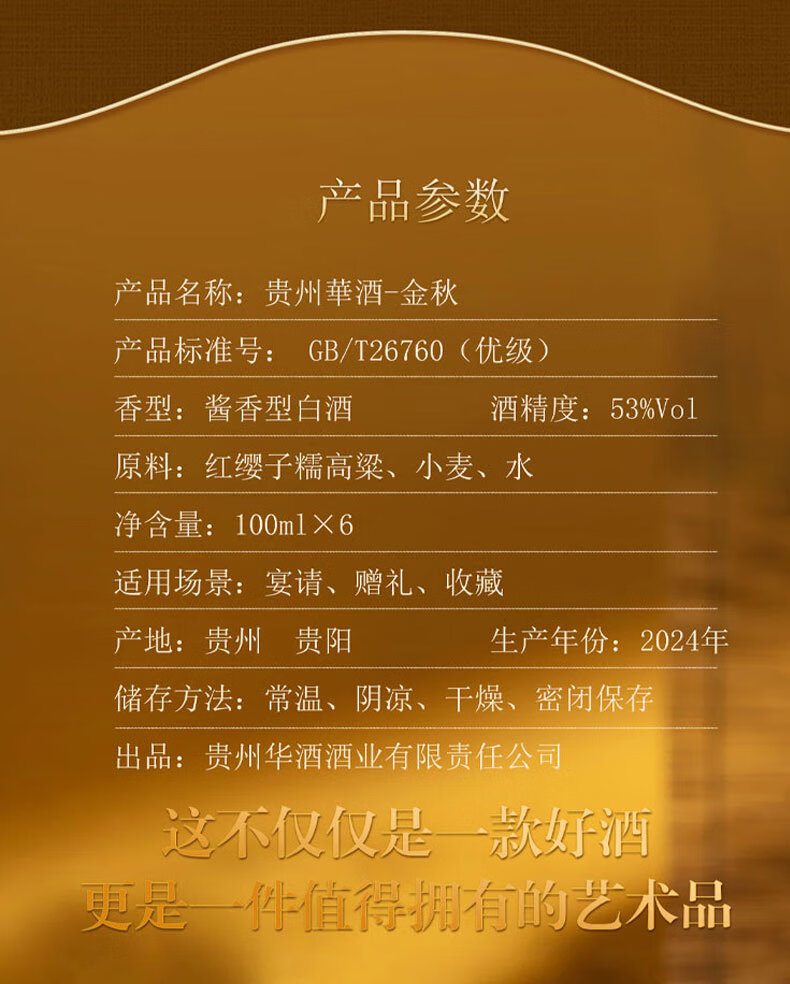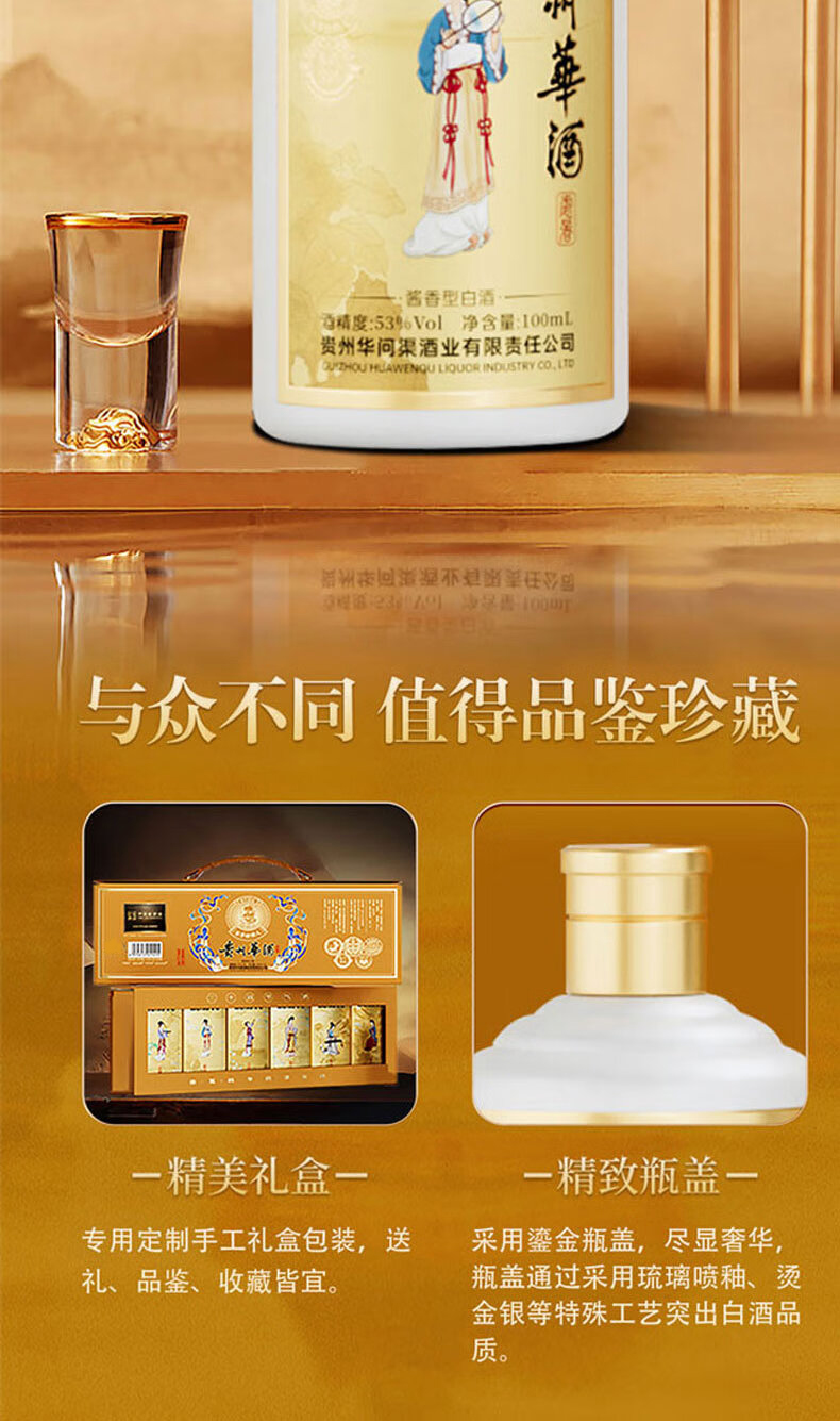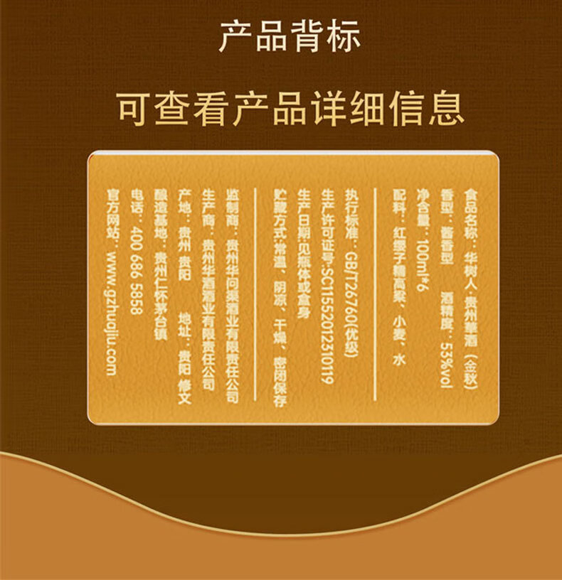 贵州华酒 金秋 53度 纯粮酱酒 送人送礼 口粮酒 100ml*6瓶 整箱装