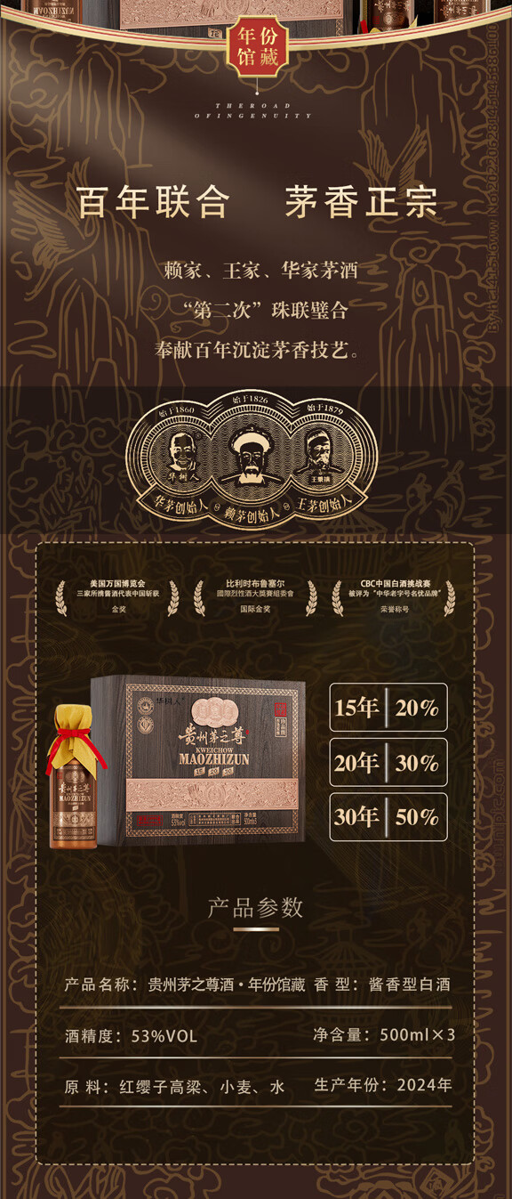华树人贵州茅之尊酒 年份馆藏 53%vol酱香白酒 送人送礼商务接待 500ml*3瓶 整箱