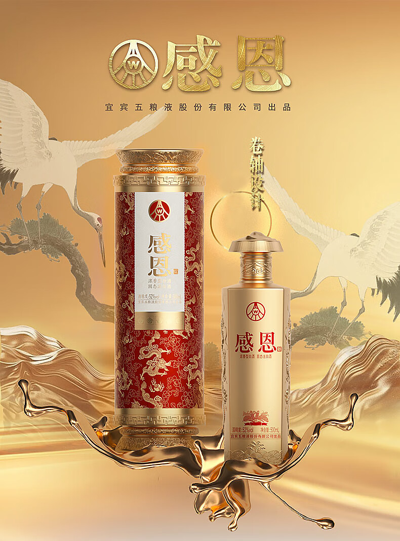 五粮液股份有限公司出品感恩卷轴 52度 浓香型白酒 宴请送礼 500mL*6瓶 整箱装