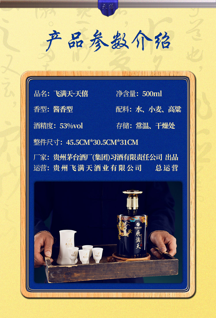 贵州多彩习酒 飞满天 天禧 53度 酱香型白酒 500ml*6瓶 整箱