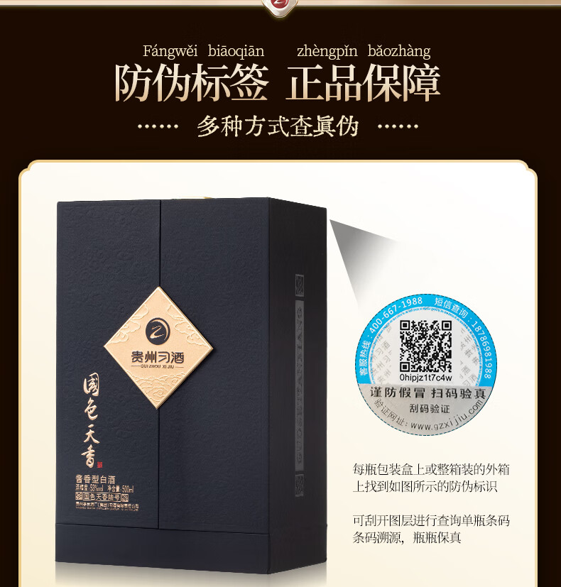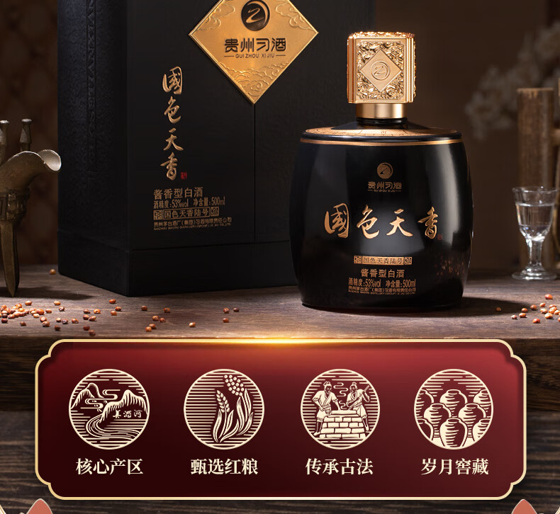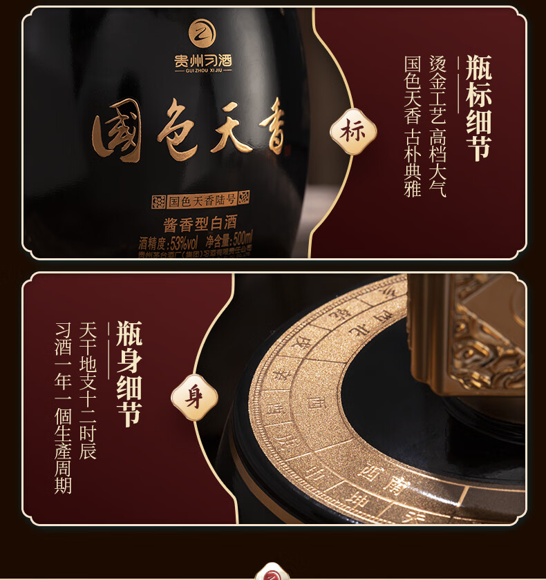贵州习酒 国色天香 陆号 53度 酱香型白酒 收藏送礼宴请 500ml*6瓶 整箱