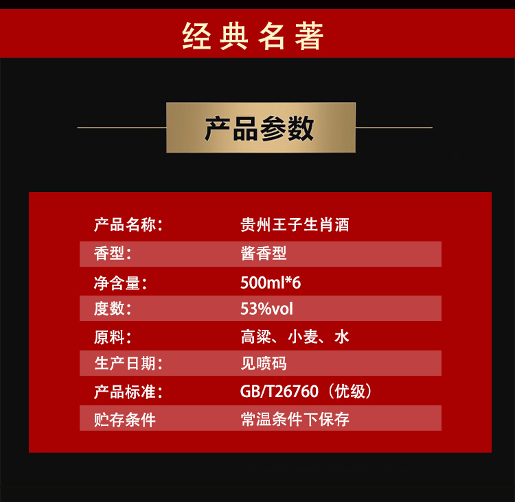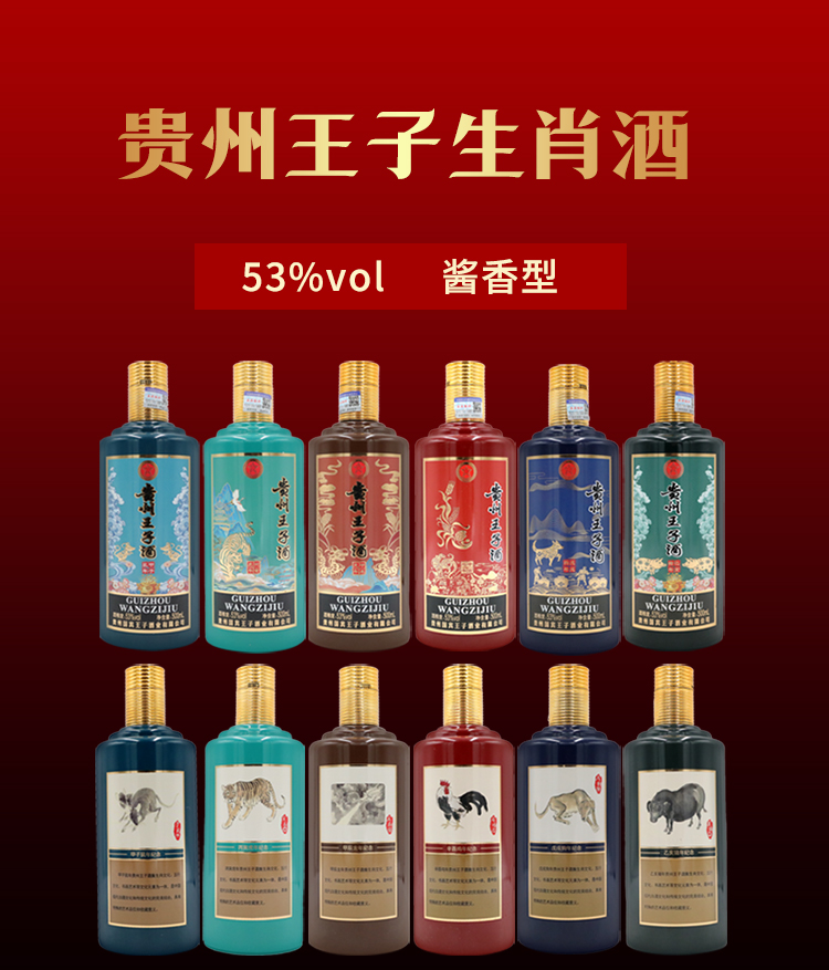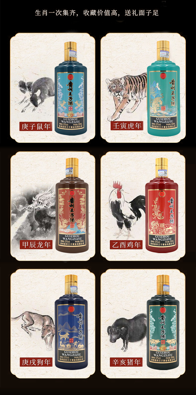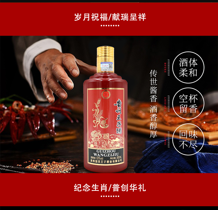贵州王子 生肖纪念酒 53度 酱香型白酒 纯粮酿造 500ml*6瓶 整箱