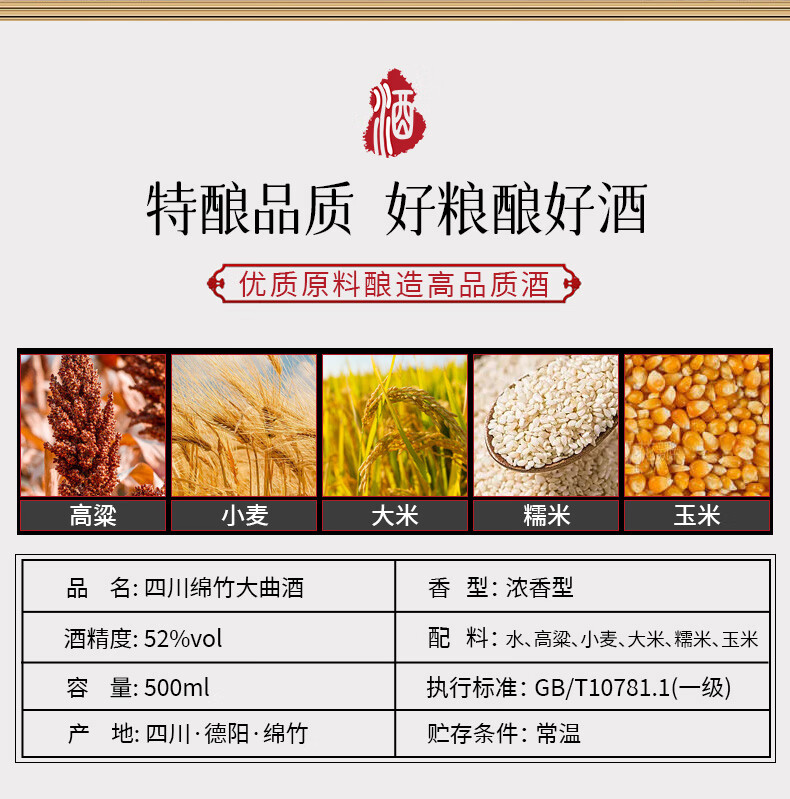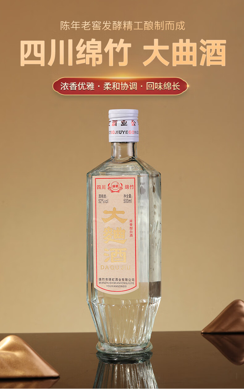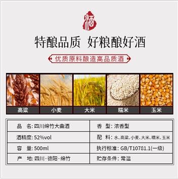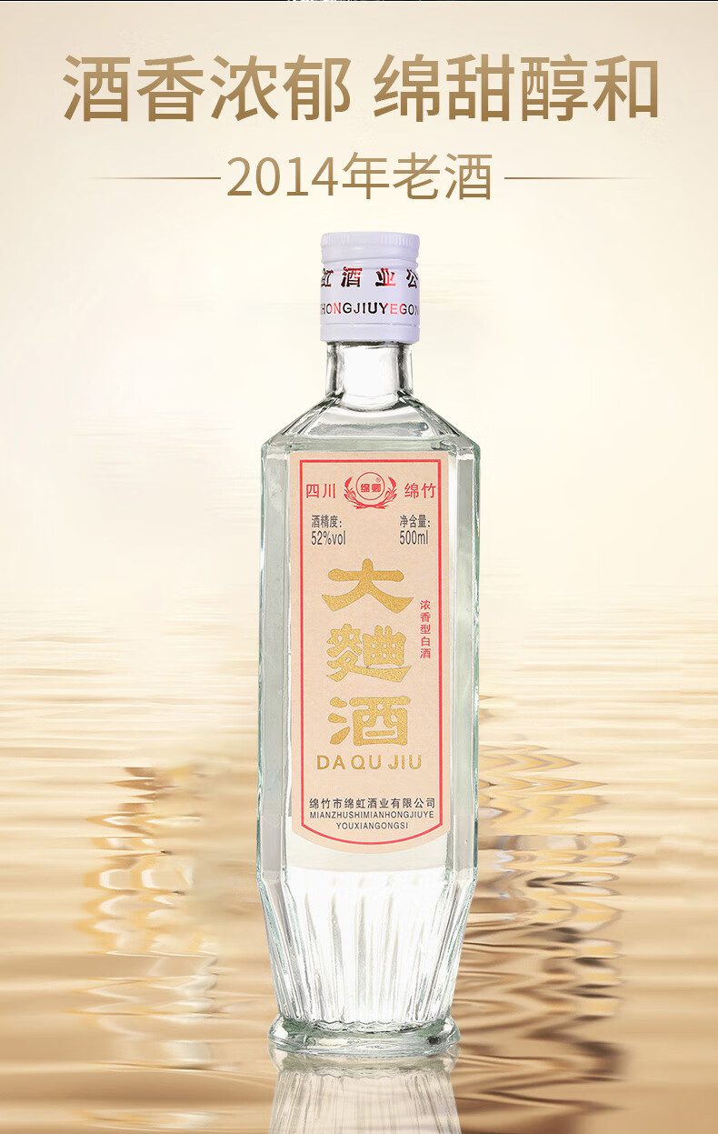 绵卿 绵竹大曲 2014年老酒 52度 浓香型白酒 500ml*6瓶 整箱