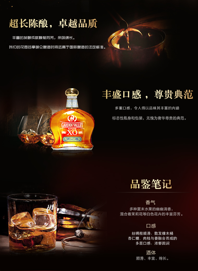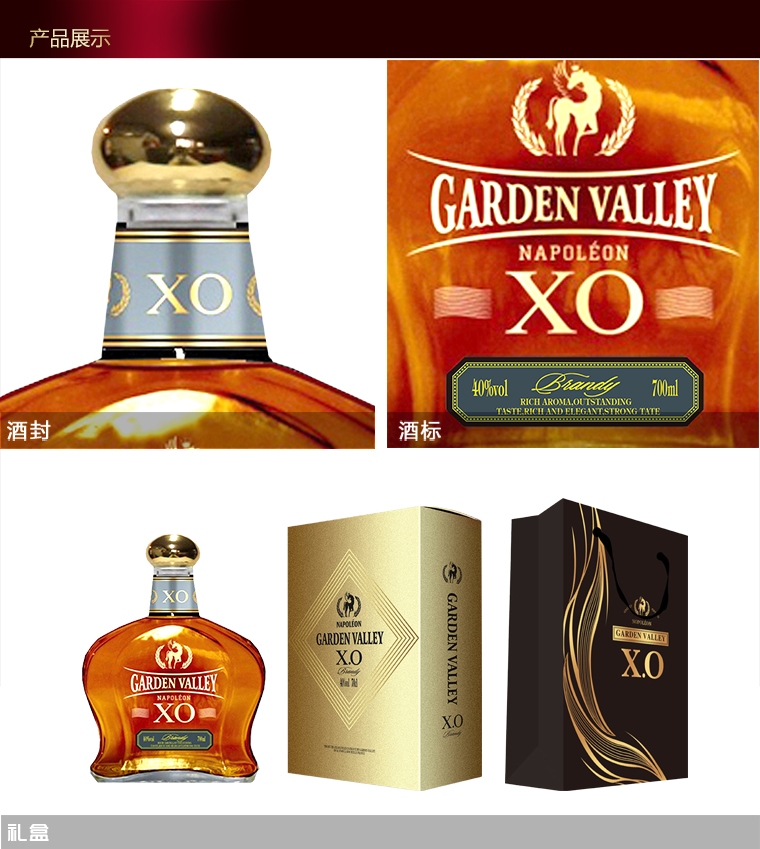 花园谷 拿破仑xo 白兰地 法国进口原酒 40%vol 700ML*6瓶 整箱