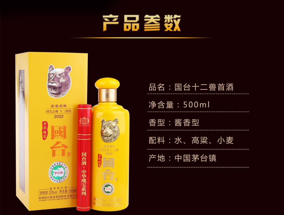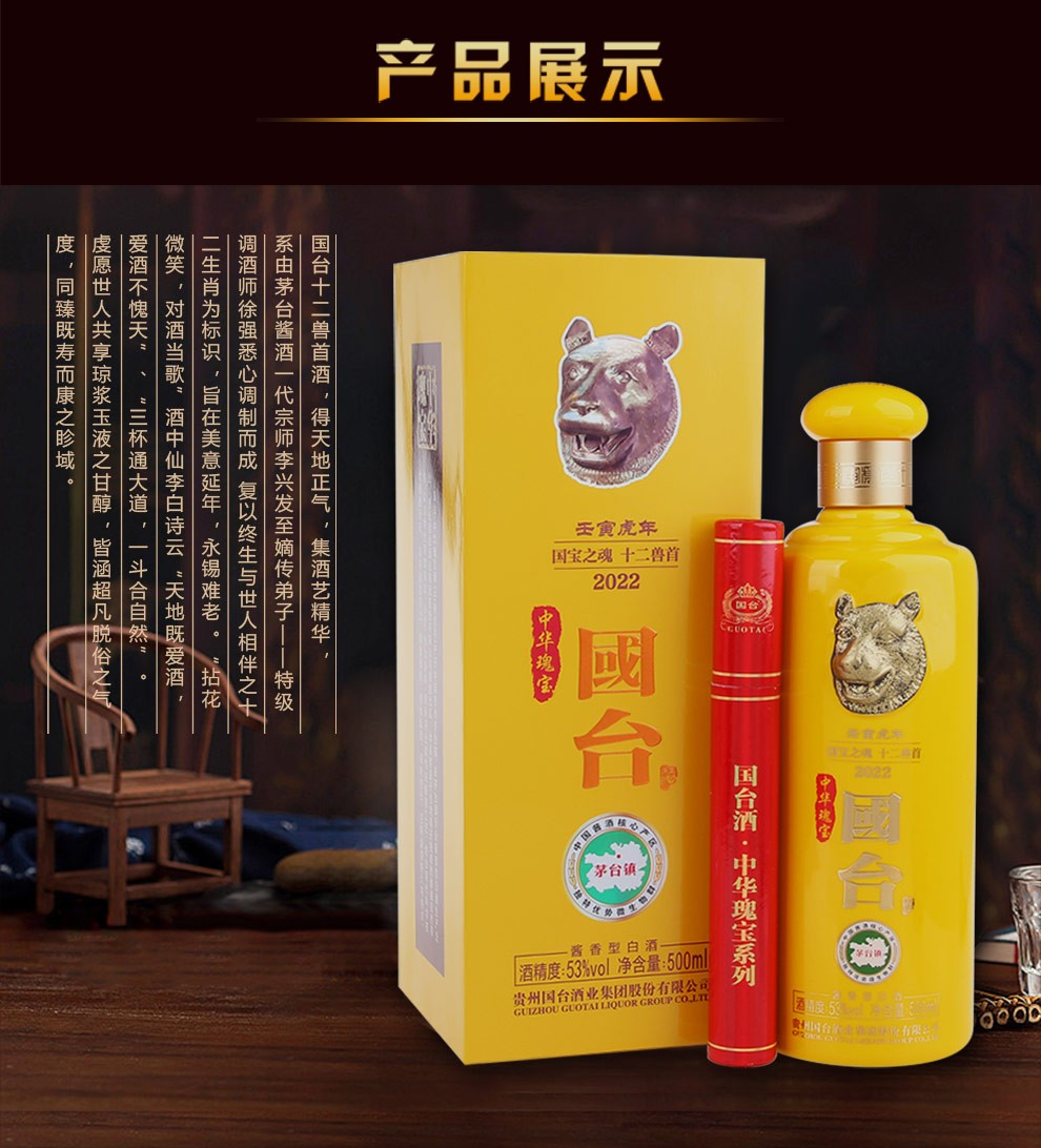 国台国台酒 国台十二兽首酒(虎首)陈酿瑰宝 53度 酱香型白酒 500mL*6瓶 整箱