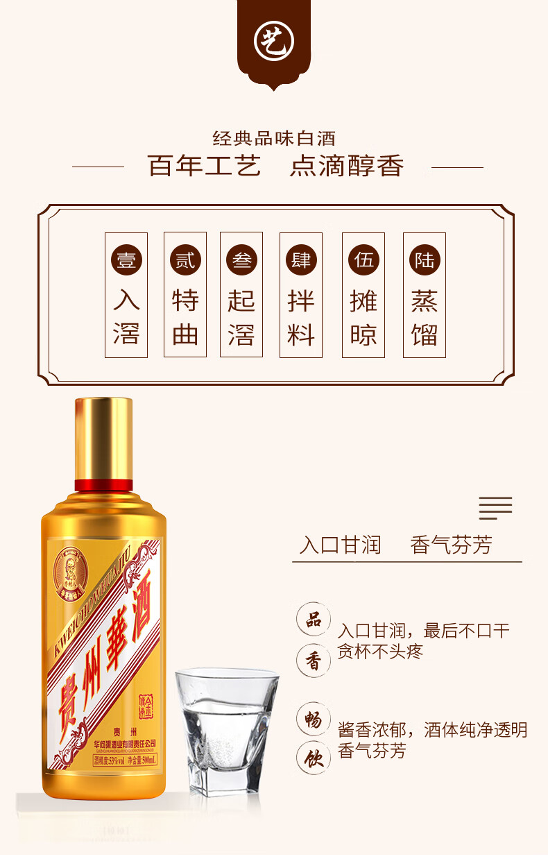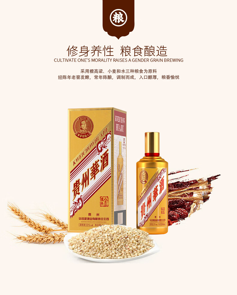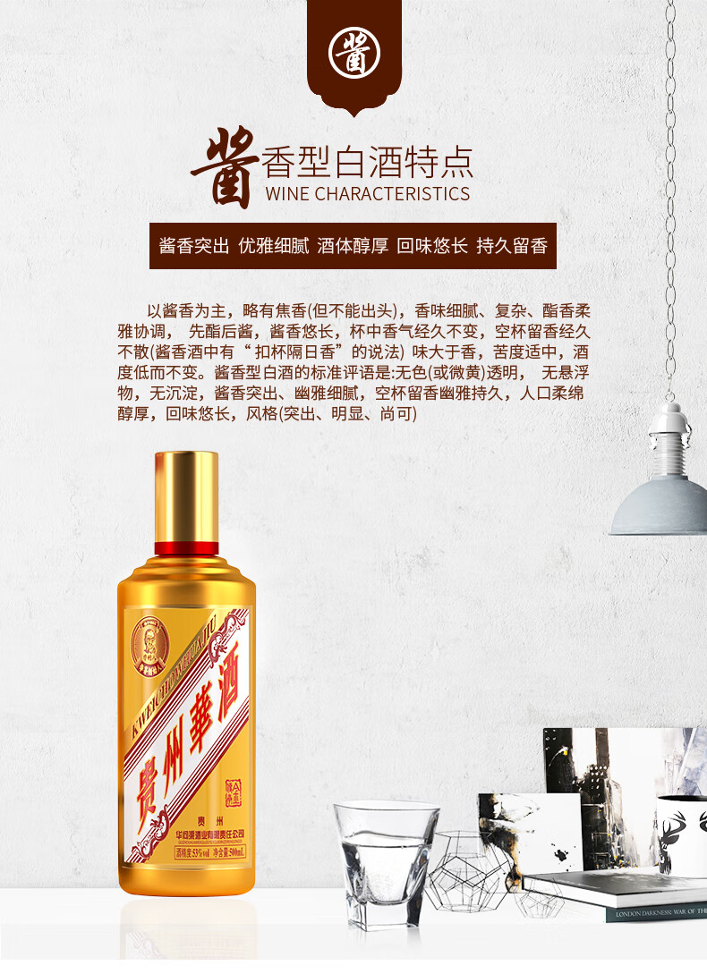 贵州华酒酒 传承金 53度 酱香型白酒 粮食酒 自饮送礼 500mL*6瓶 整箱装
