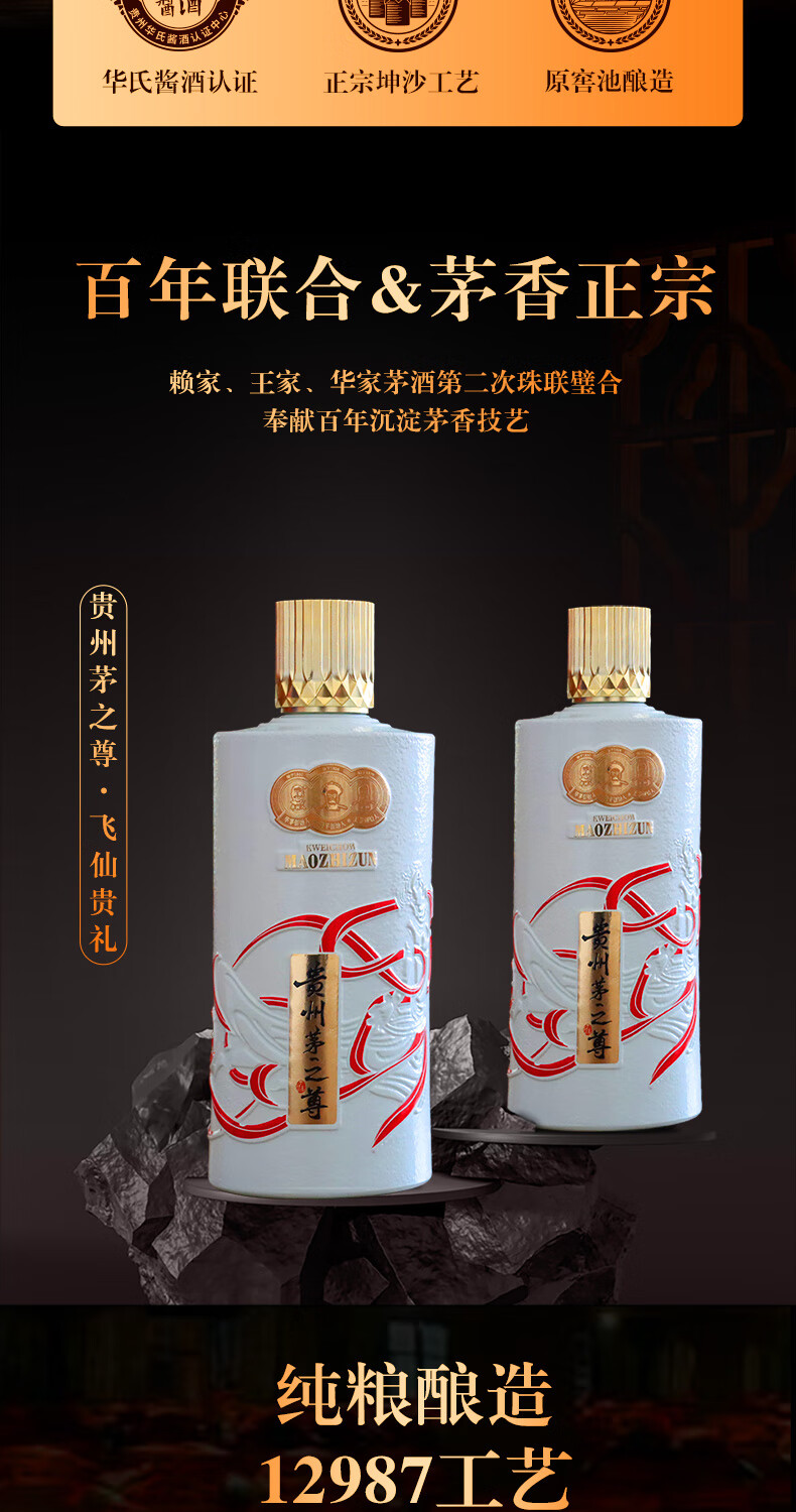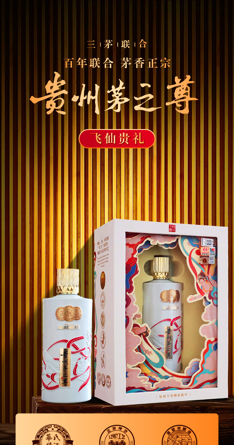 华树人 贵州茅之尊酒100 飞仙贵礼 53%vol 酱香型白酒 自饮 送人 送礼 500ml*4瓶 整箱装