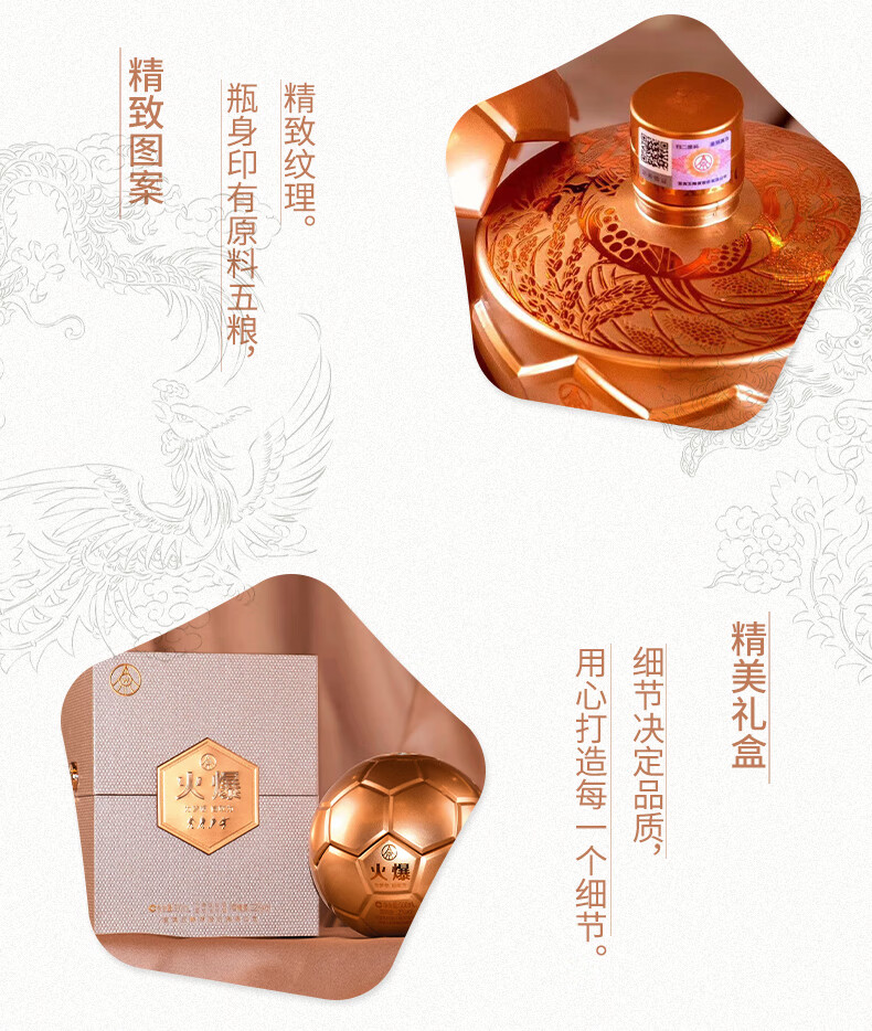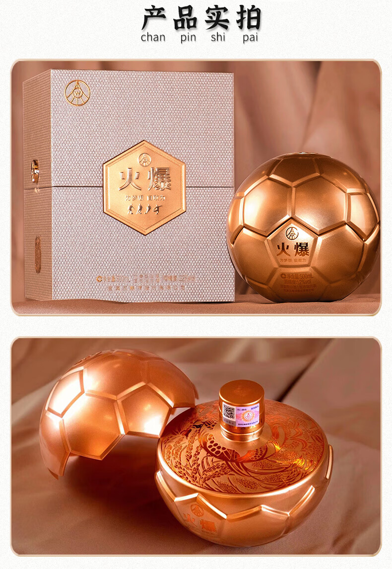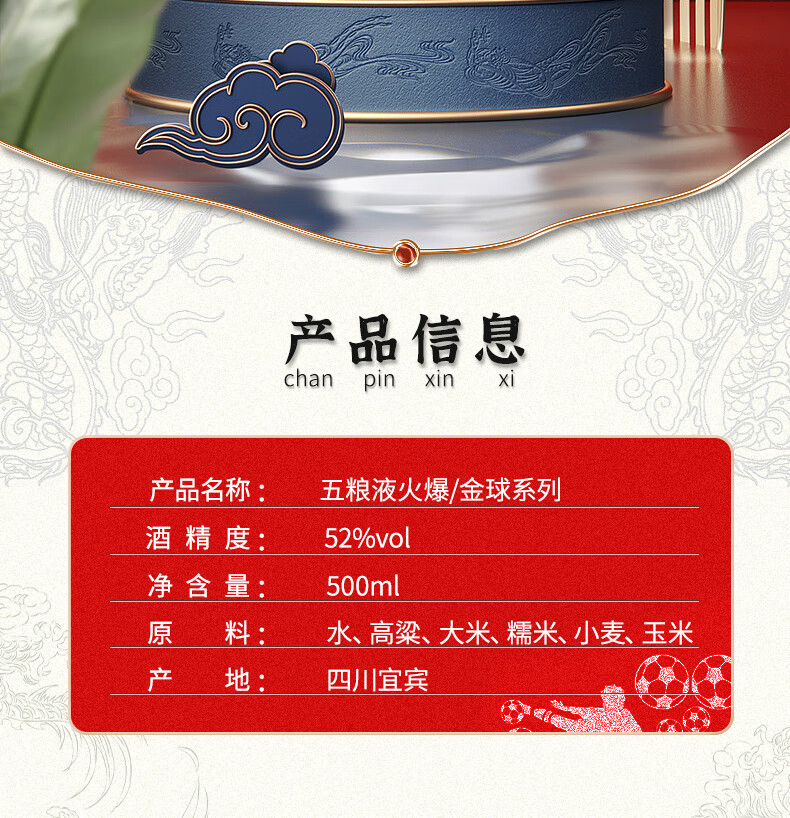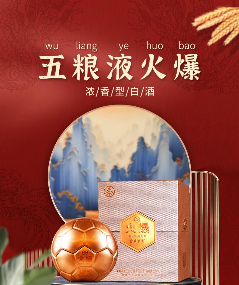 五粮液股份公司出品 火爆酒金球 52度 浓香型白酒 商务送礼聚会酒水 500mL*6瓶 整箱