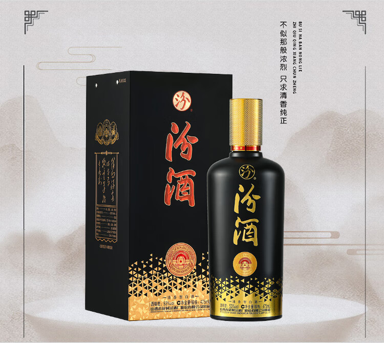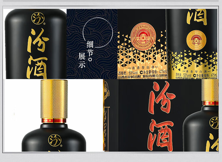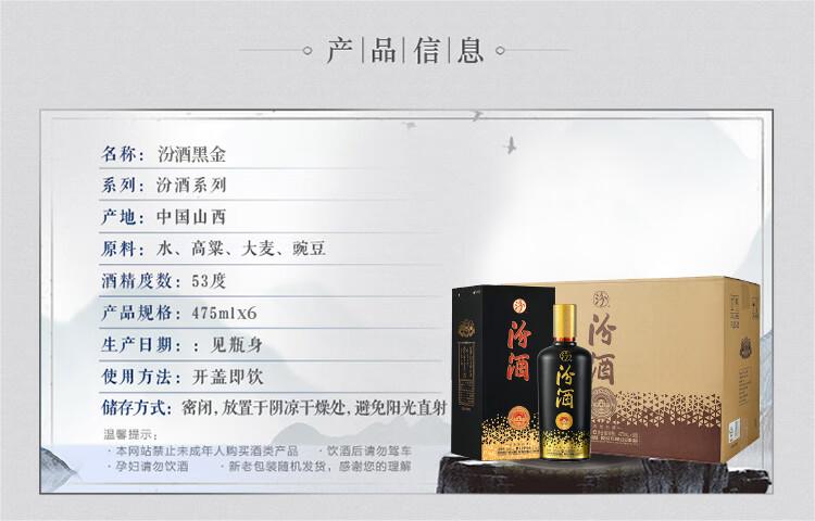 汾酒黑金 53度 清香型白酒 475ml*6瓶 整箱装