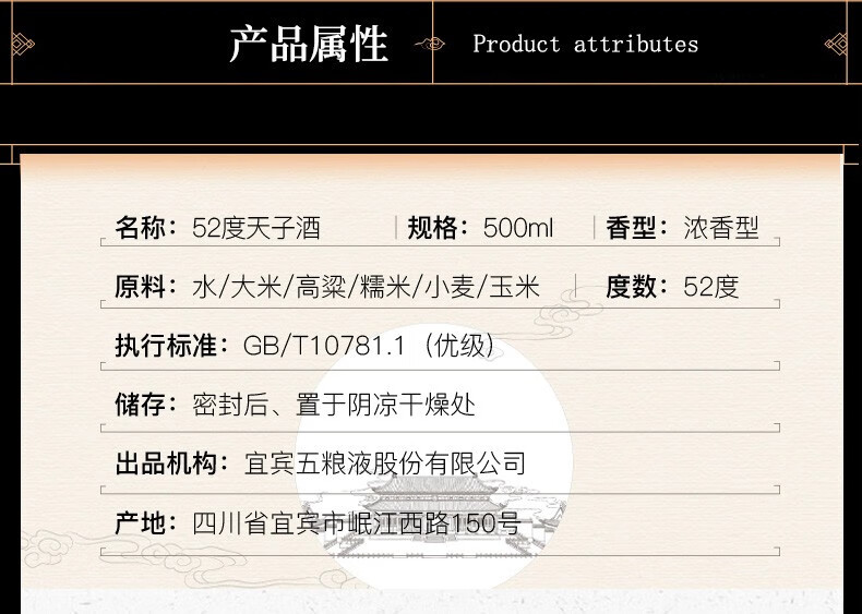 五粮液股份有限公司 天子酒 52度 浓香型白酒 高端收藏送礼 500mL*6瓶 整箱