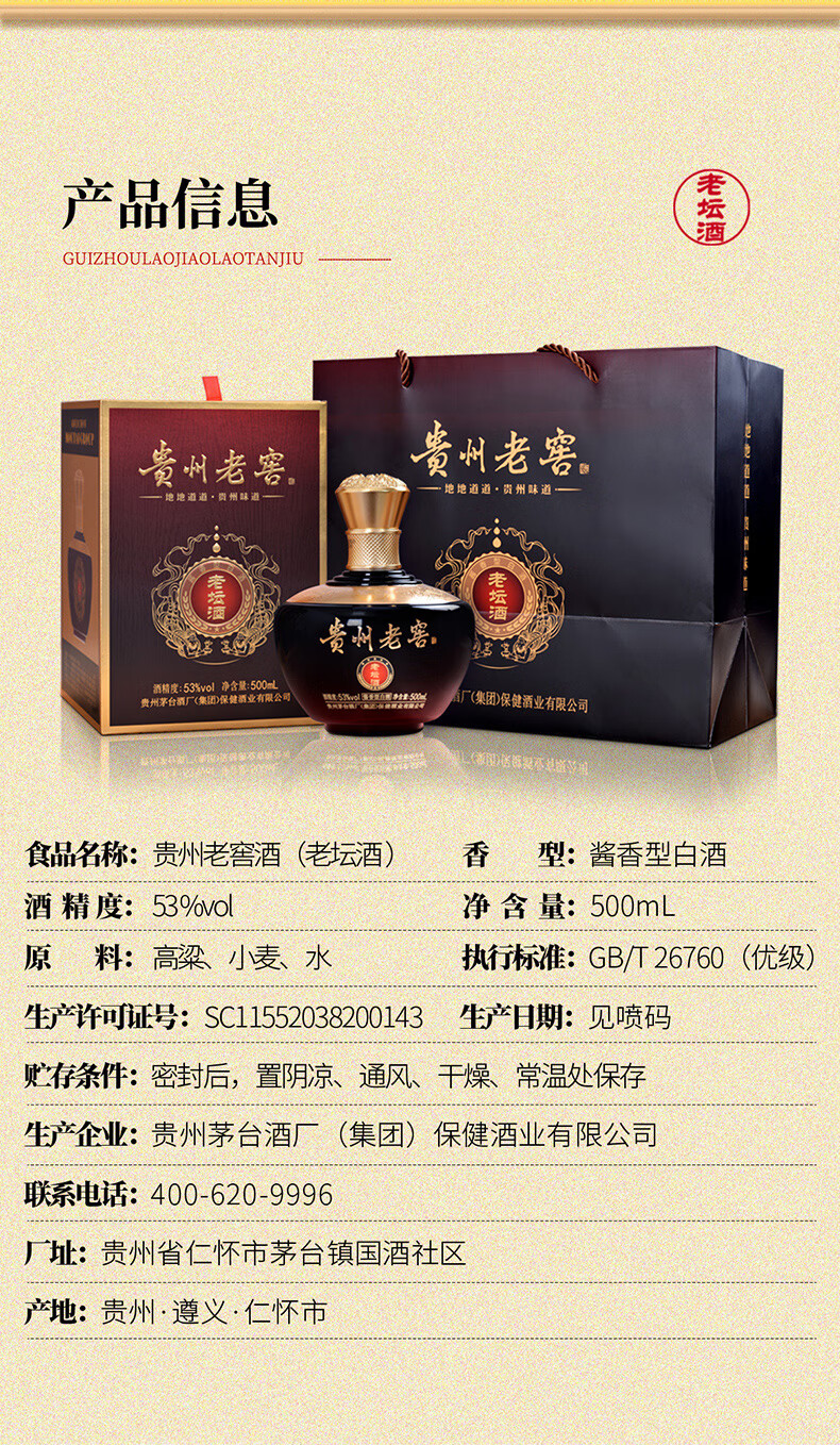 贵州茅台集团 贵州老窖 老坛酒 2023年版 53度 酱香型白酒 纯粮酿造 500mL*6瓶 整箱