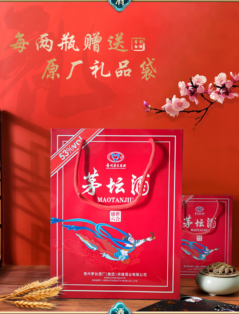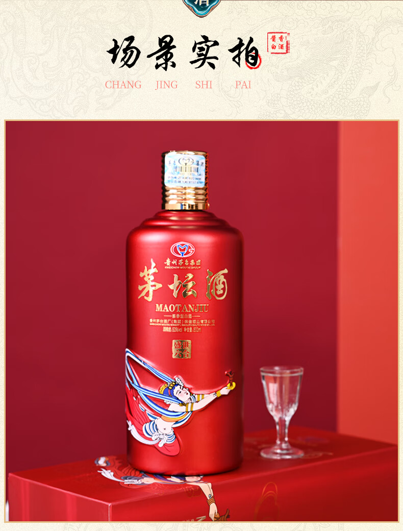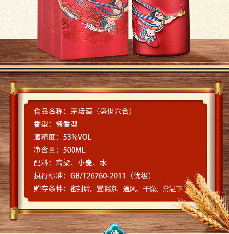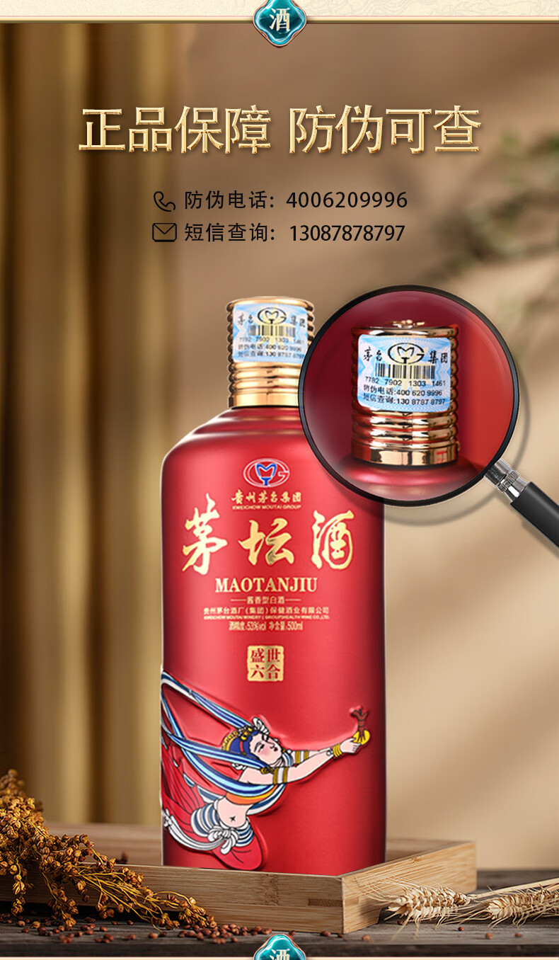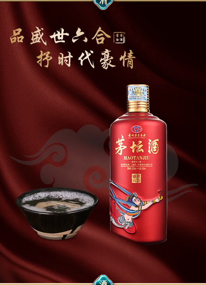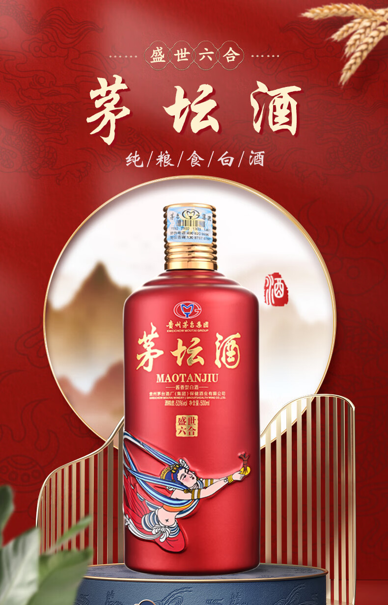 茅台集团 茅坛酒 盛世六合 红 飞天仙女图 53度 酱香型白酒 500ml*6瓶 整箱