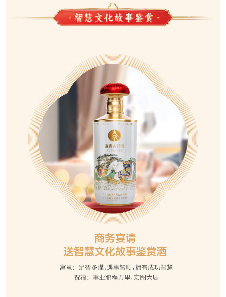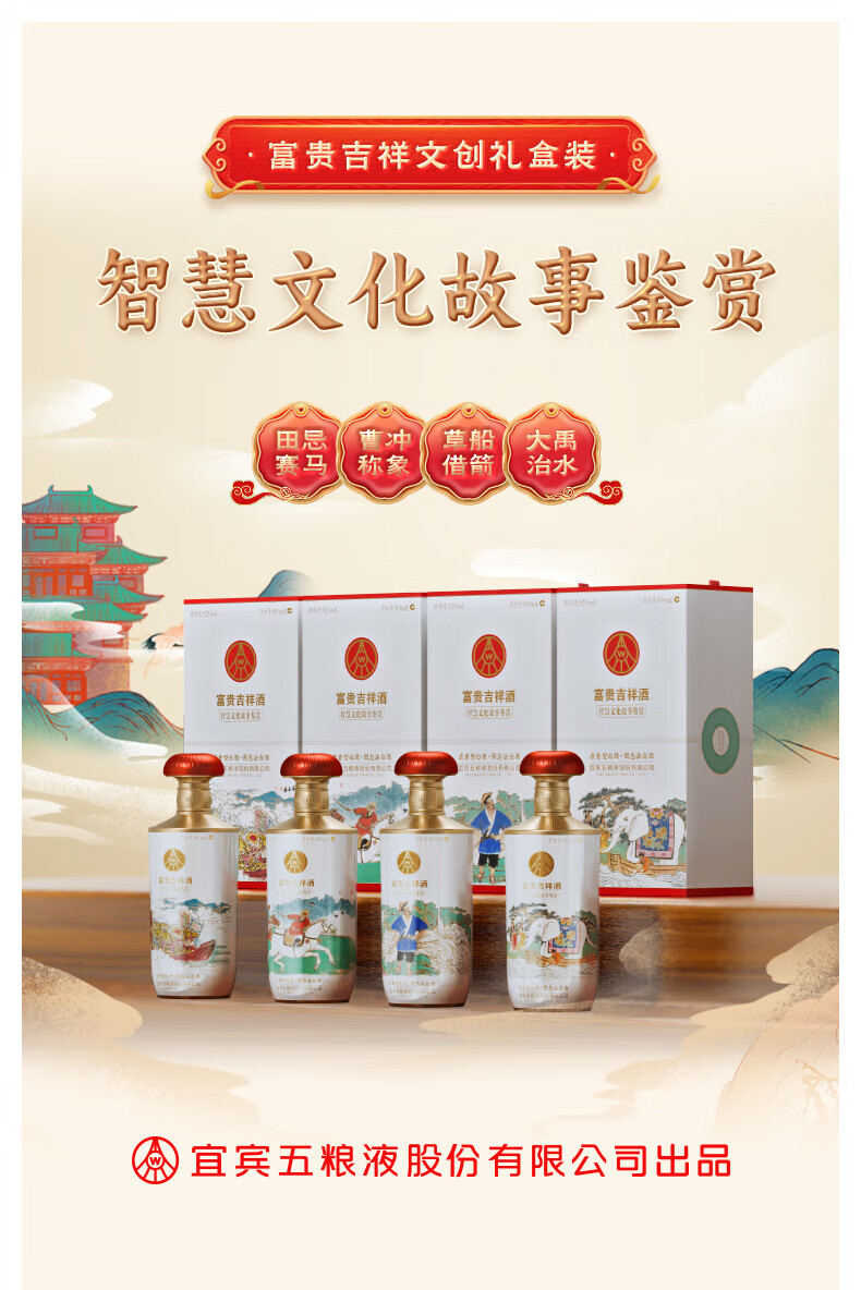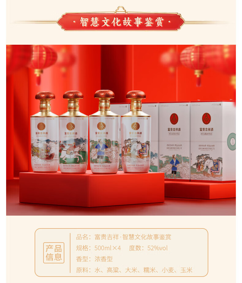 五粮液 富贵吉祥酒 智慧文化故事 52度 浓香型高度白酒 500mL*4瓶 礼盒
