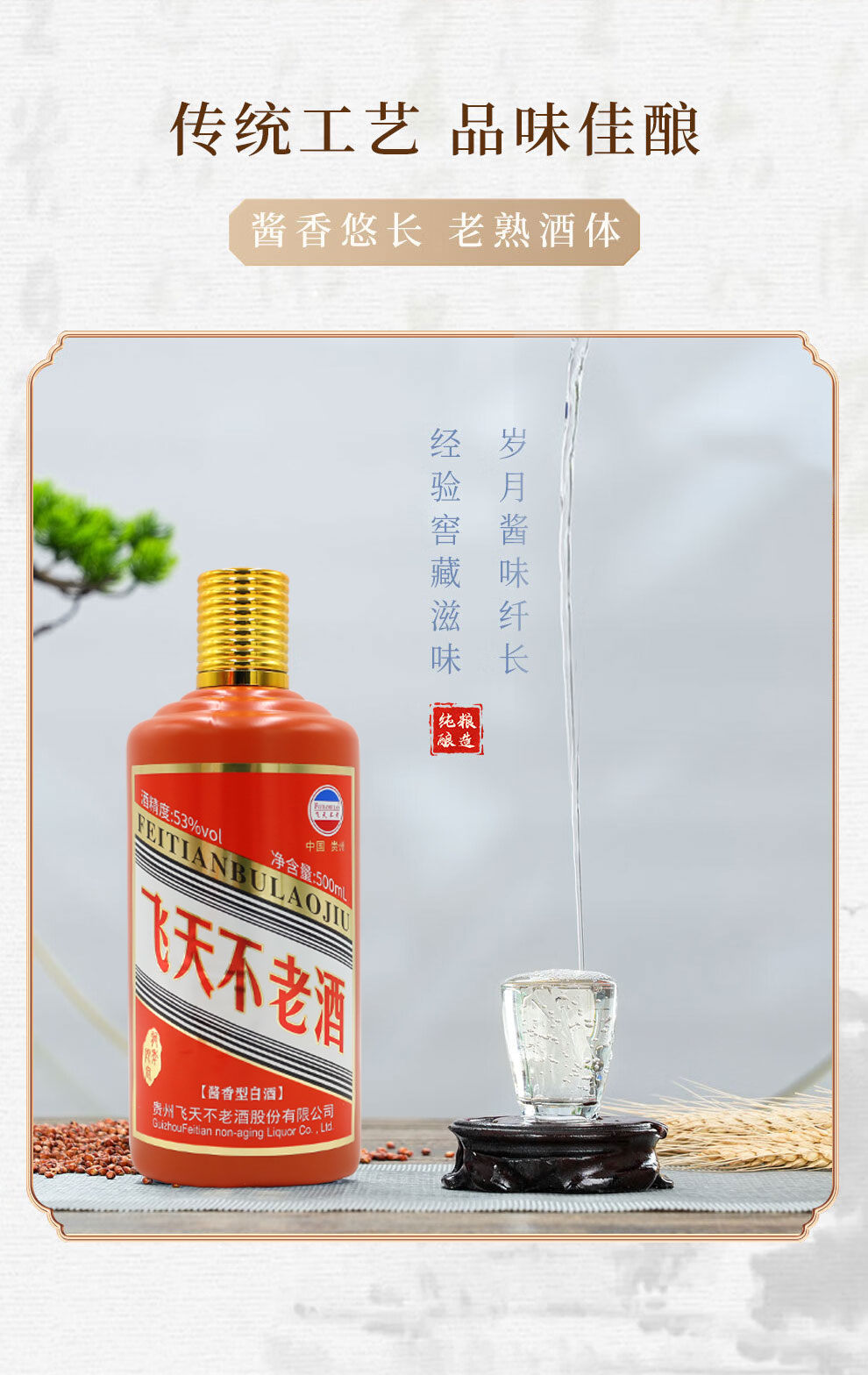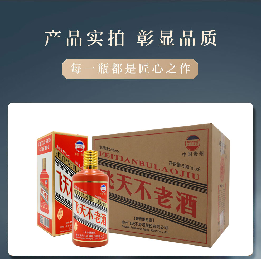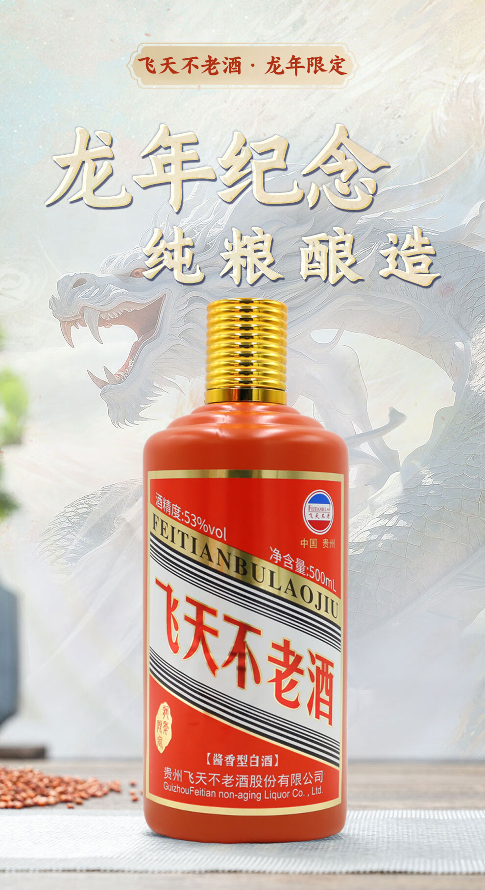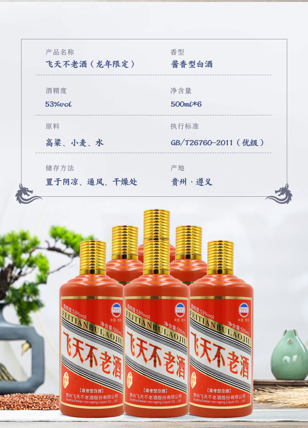 贵州茅台镇 飞天不老 龙年限定 53度 酱香型白酒 500ml*6瓶 整箱