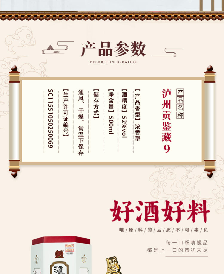 泸州老窖 泸州贡鉴藏9 52度 浓香型白酒 500ml*6瓶 整箱