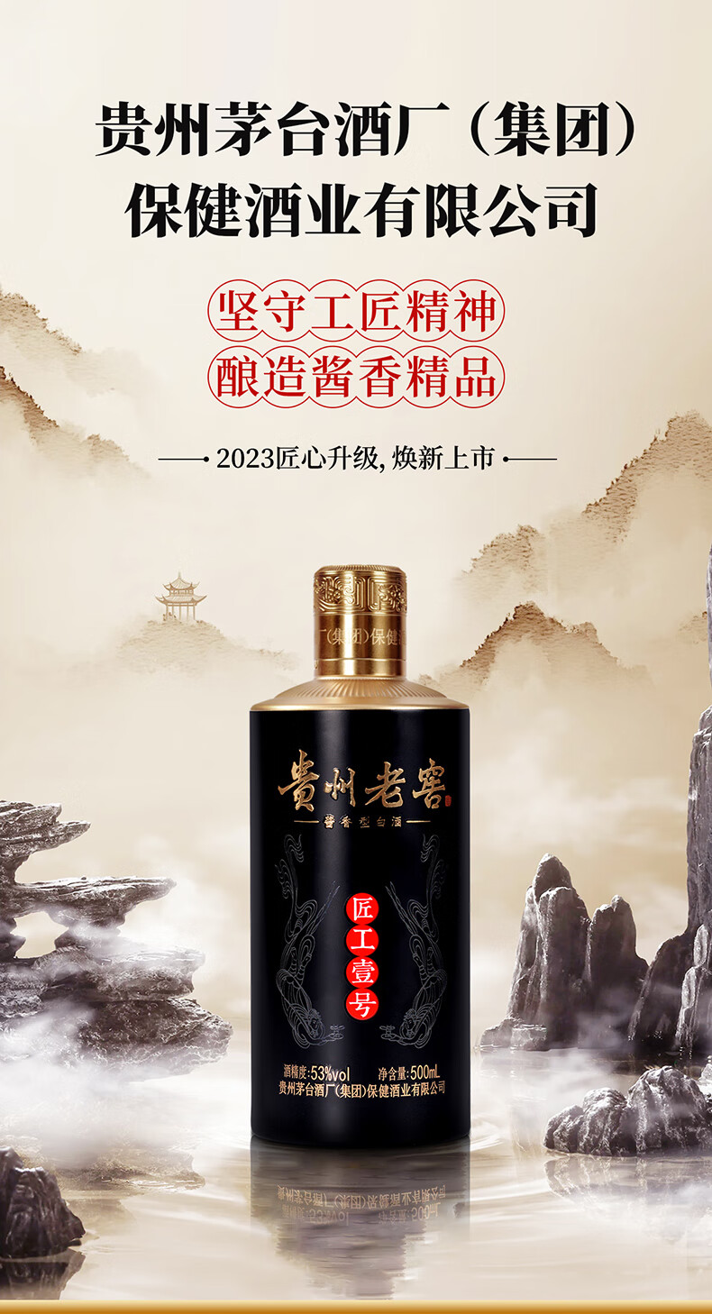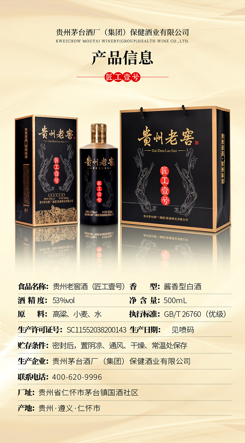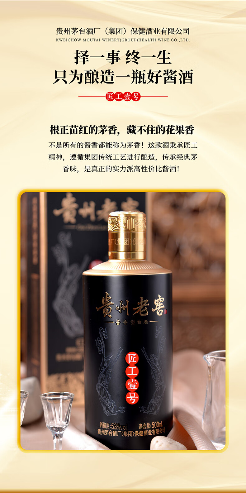 茅台(MOUTAI)贵州老窖 匠工壹号 2023款 53度 酱香型白酒 节日送礼纯粮酒 500ml*6瓶 整箱
