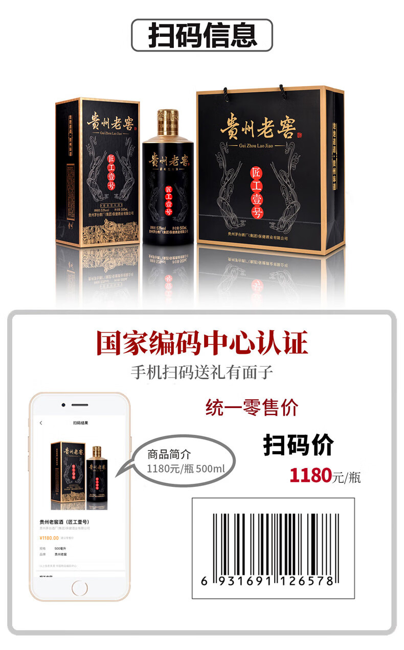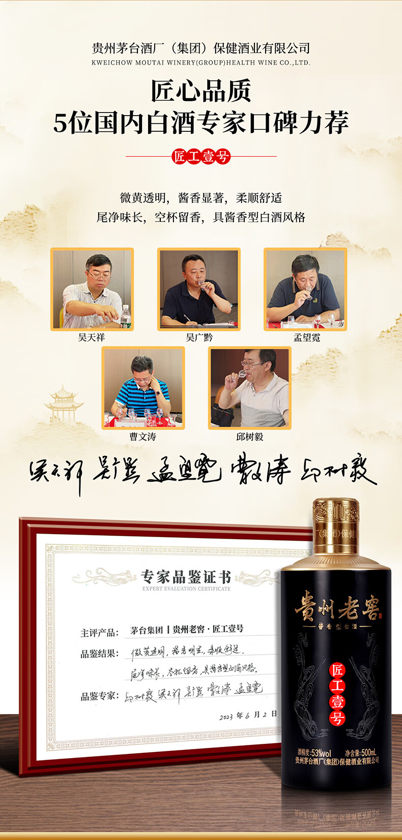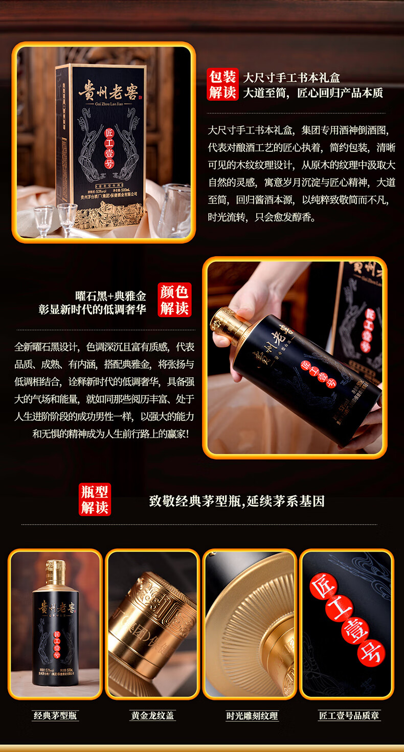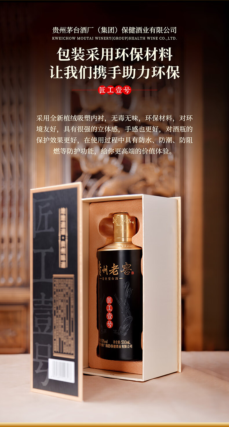 茅台(MOUTAI)贵州老窖 匠工壹号 2023款 53度 酱香型白酒 节日送礼纯粮酒 500ml*6瓶 整箱