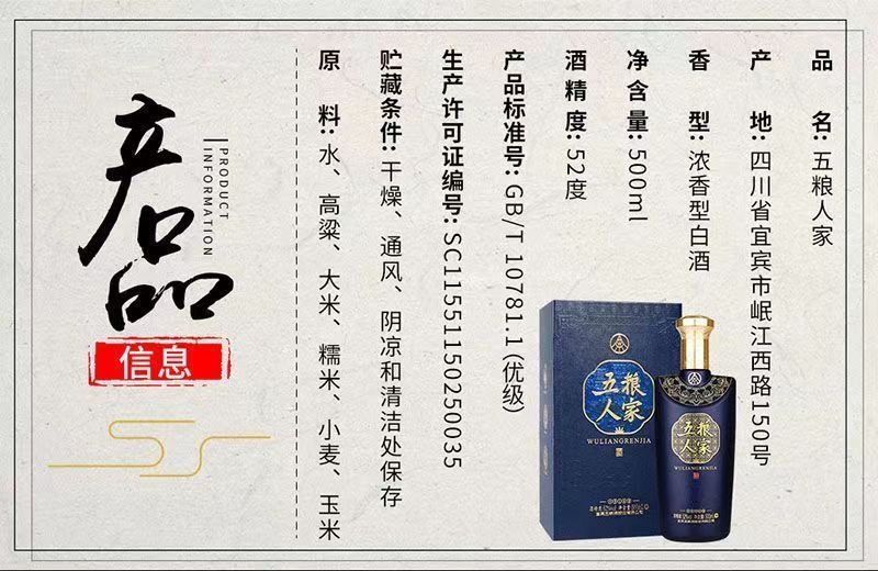 五粮液股份出品 五粮人家 52度 浓香型白酒 500ml*6瓶 整箱