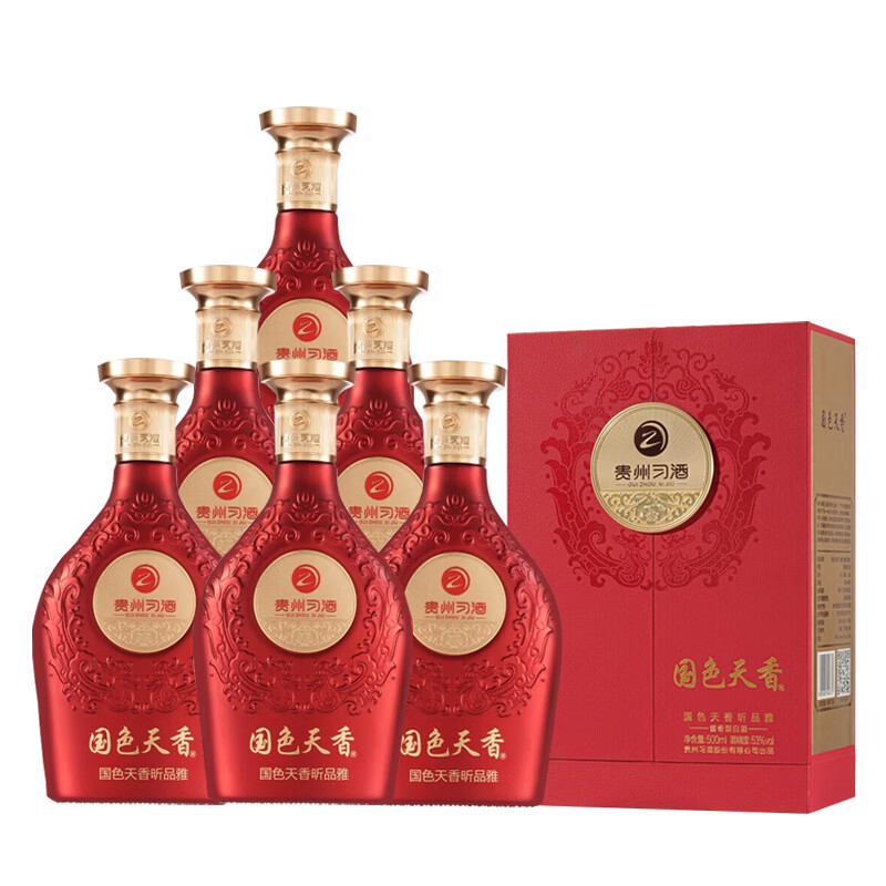贵州习酒 国色天香 昕品雅 53度 酱香型白酒 53度 500mL*6瓶 整箱
