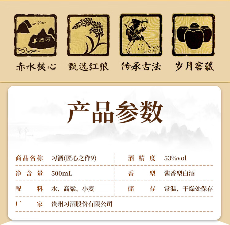 贵州习酒 匠心之作9 53度 酱香型白酒 500ml*6瓶 整箱