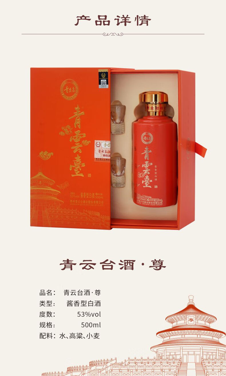 贵州茅台镇 青云台酒 尊 53度 酱香型白酒 500ml*6瓶 整箱