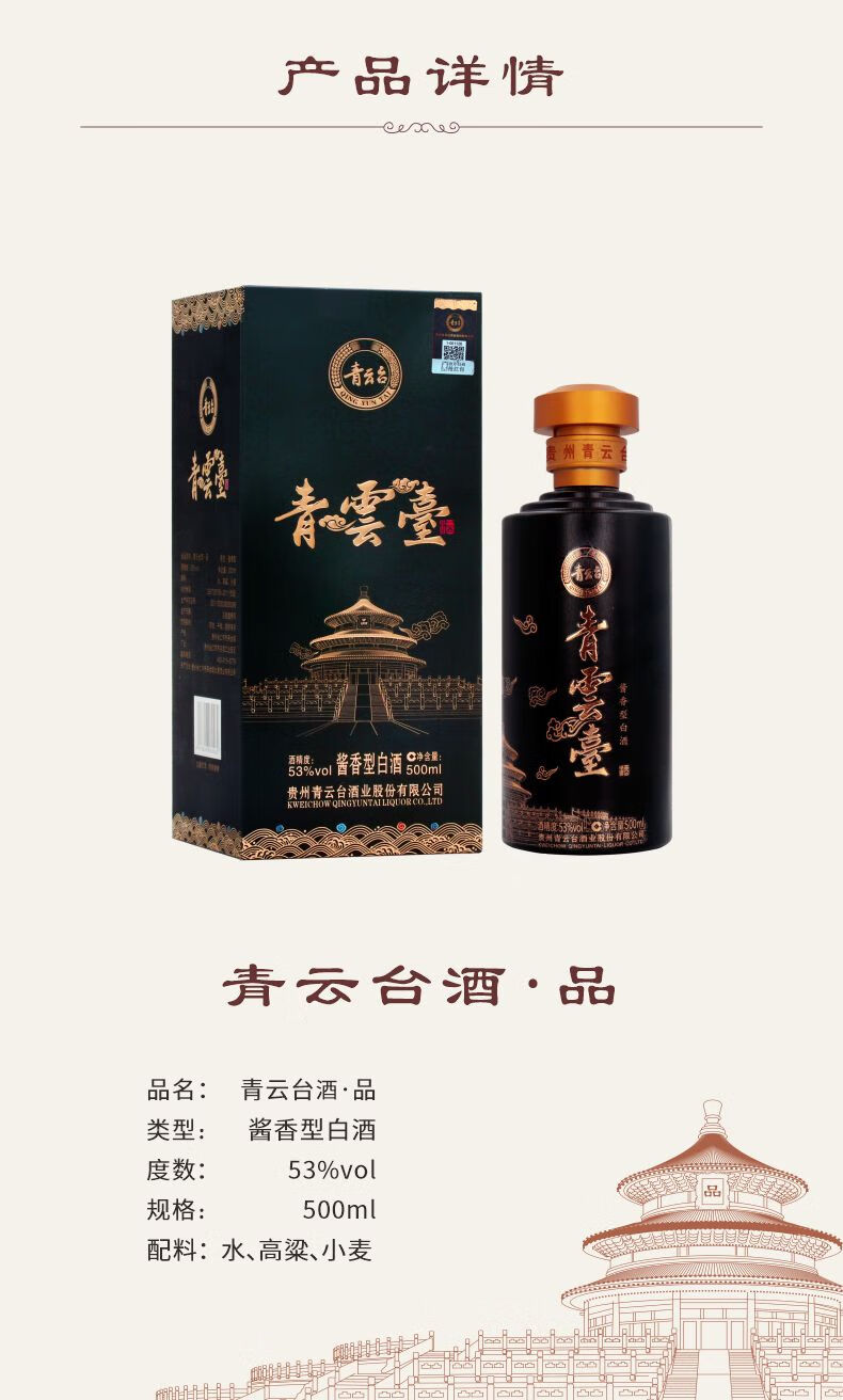 贵州茅台镇 青云台酒 品 53度 酱香型白酒 500ml*6瓶 整箱