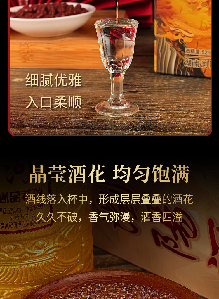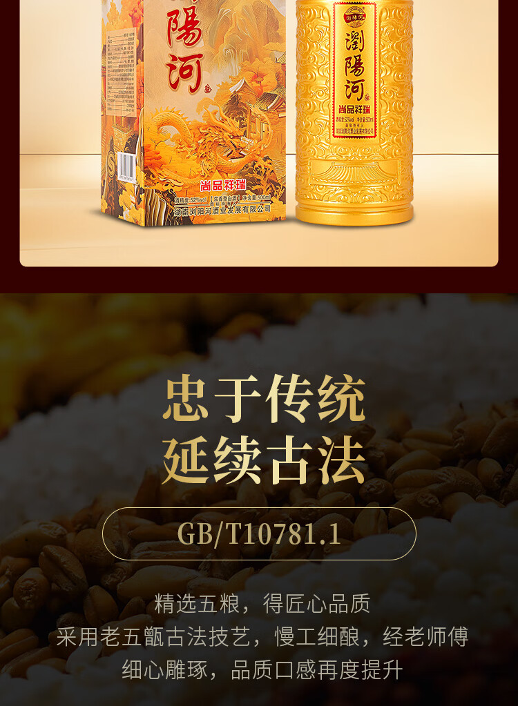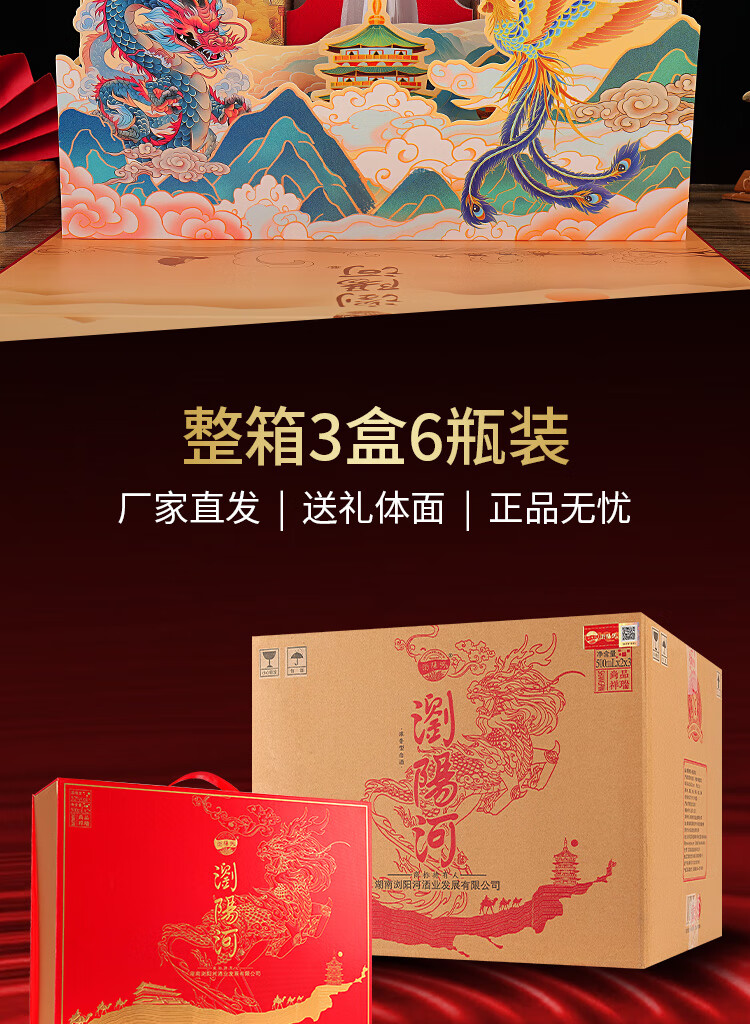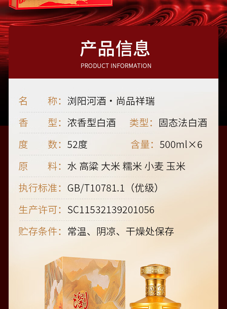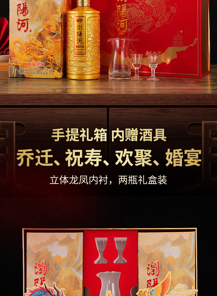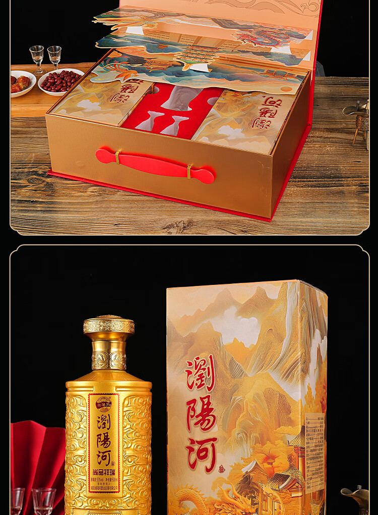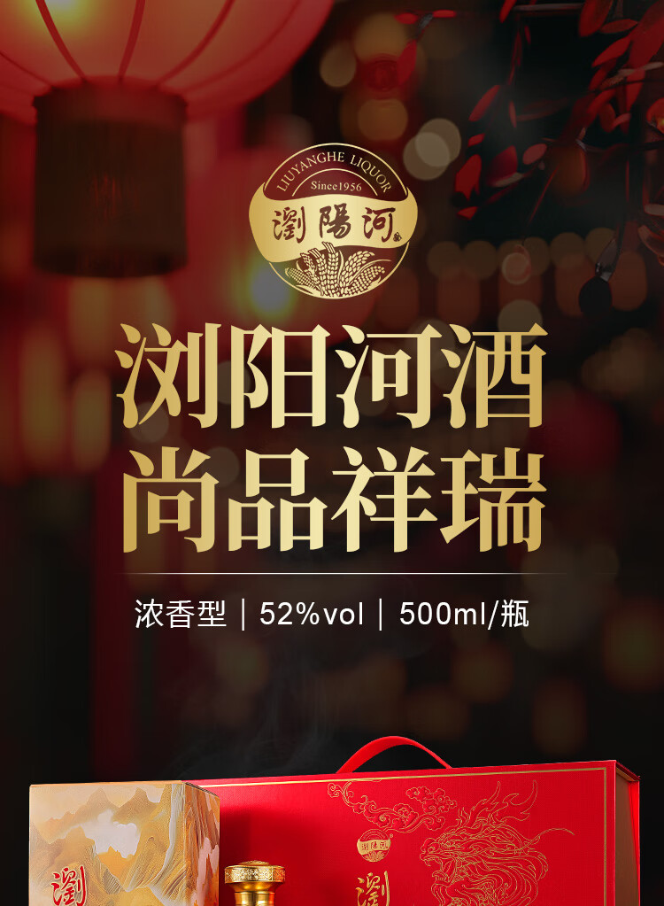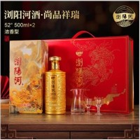 瀏陽河酒 尚品祥瑞 礼盒装 52度 浓香型 500mL*2瓶*3提含酒具 整箱