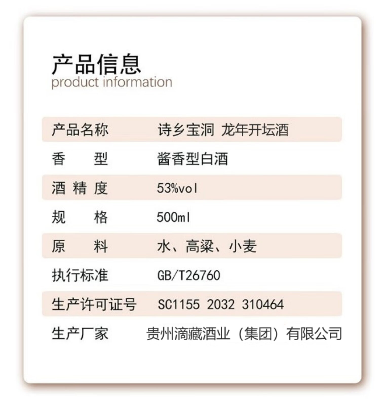 贵州老字号 诗乡宝洞 龙年开坛酒 53度 酱香型白酒 小批勾调 贵州味道 500ml*6瓶 整箱