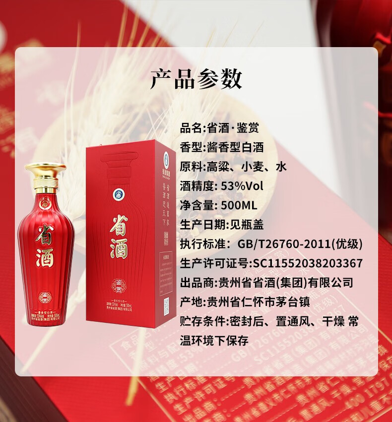 贵州茅台镇 省酒 鉴赏 红 大师手酿 53度 酱香型白酒 纯粮酿造 500ml*6瓶 整箱