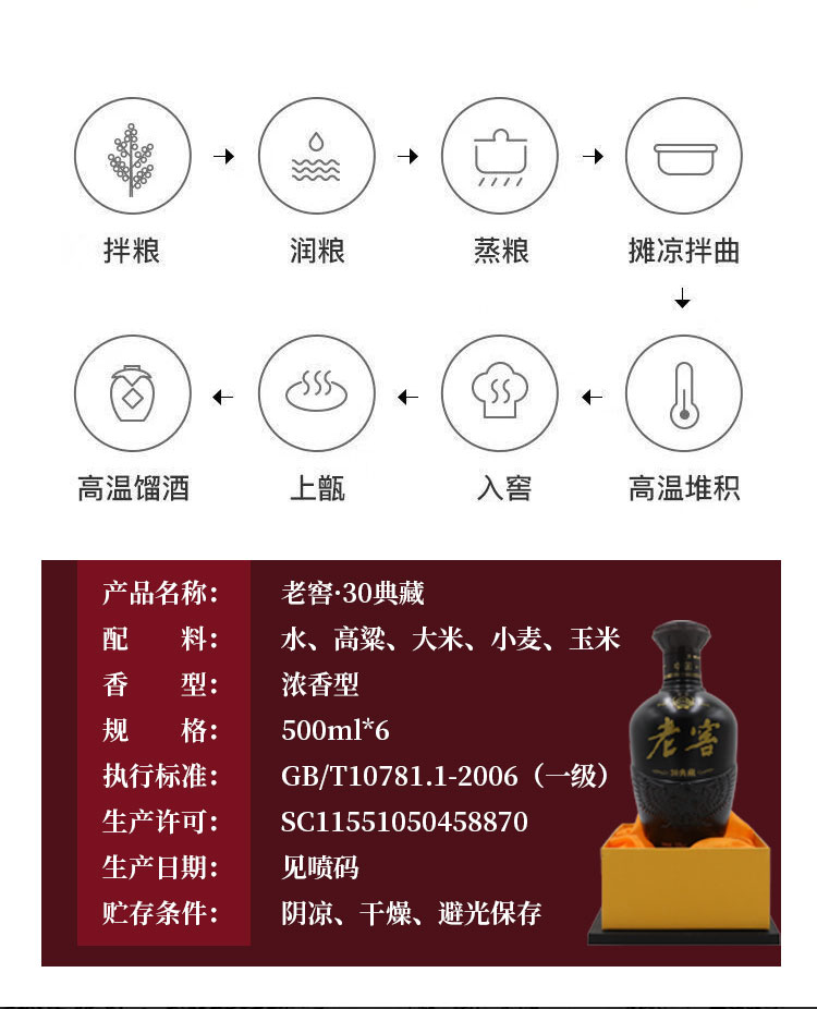 泸州国泰 老窖典藏30 52度 浓香型白酒 纯粮酿造口粮酒 500ml*6瓶 整箱