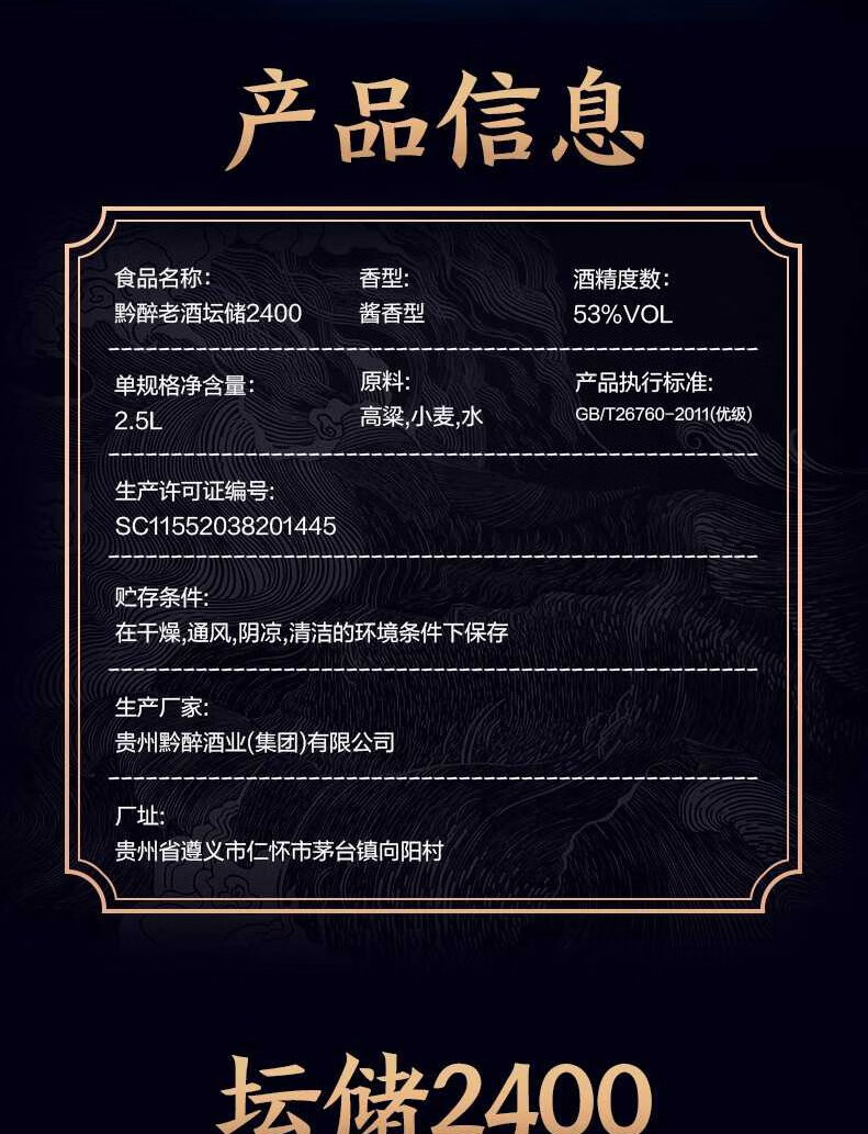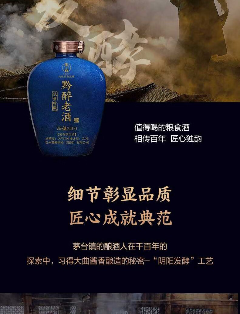 黔醉老酒 坛储3600 53度 酱香型白酒 窖藏封坛固态发酵 1500ml 坛装