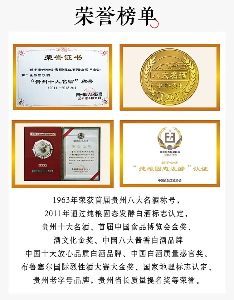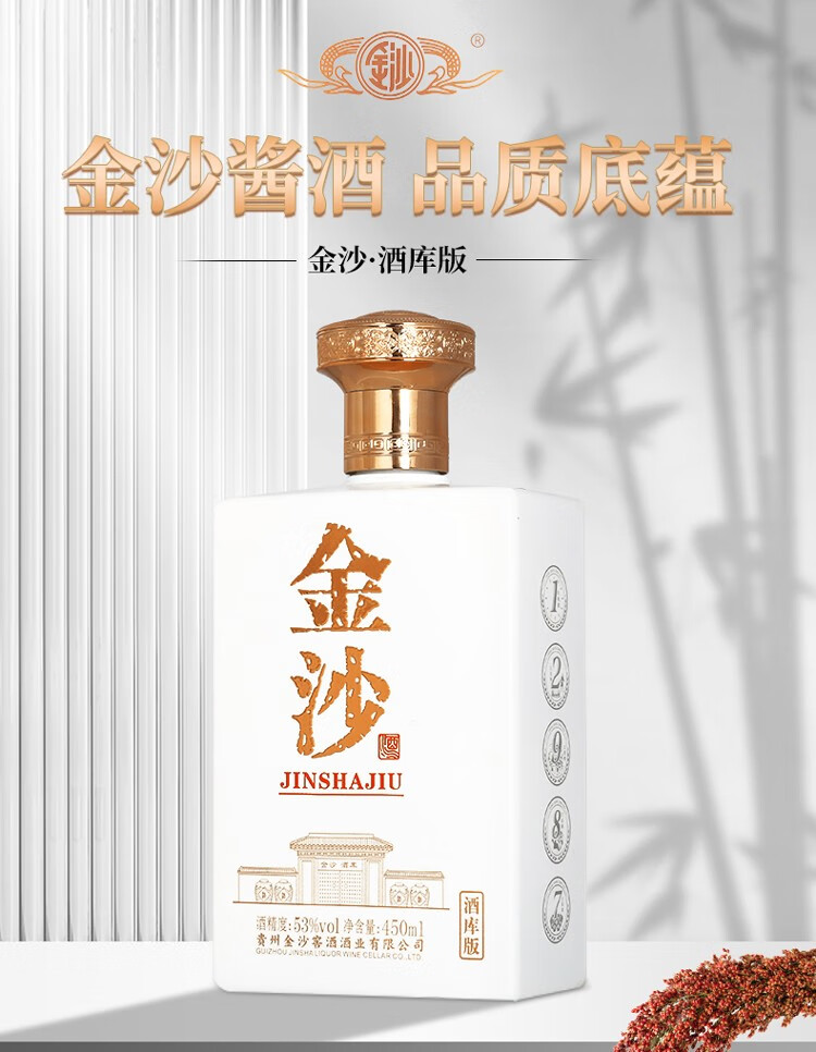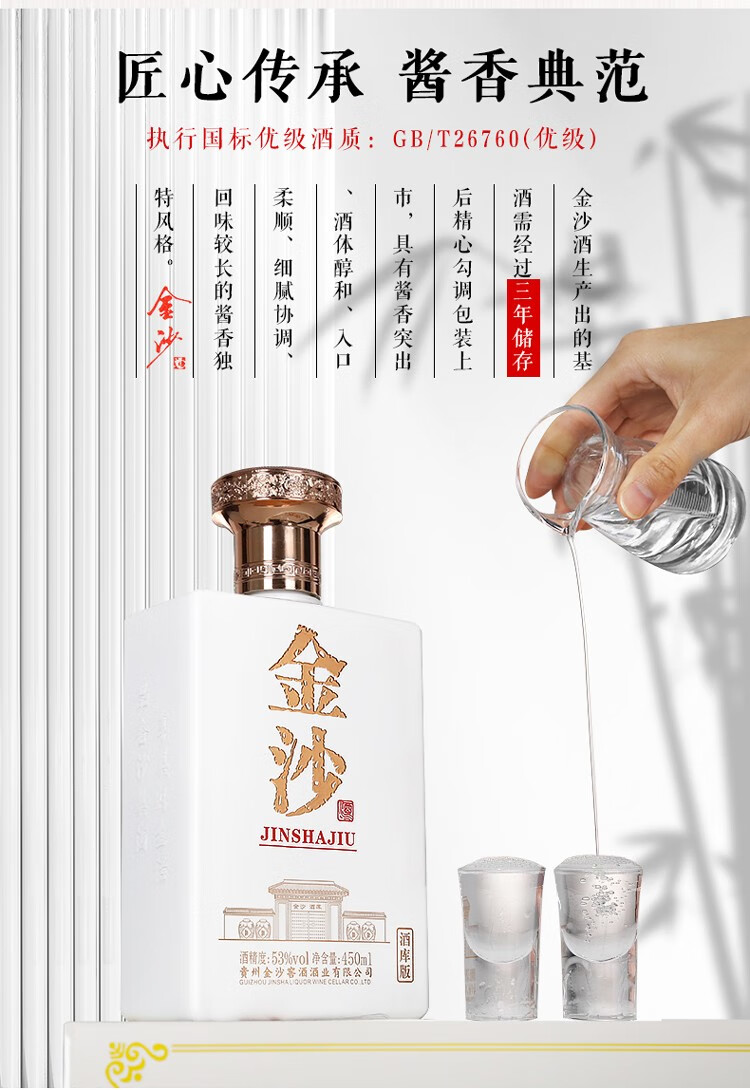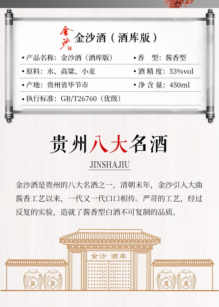 贵州金沙回沙酒 金沙酒库版 53度 酱香型白酒 450mL*4瓶 整箱装