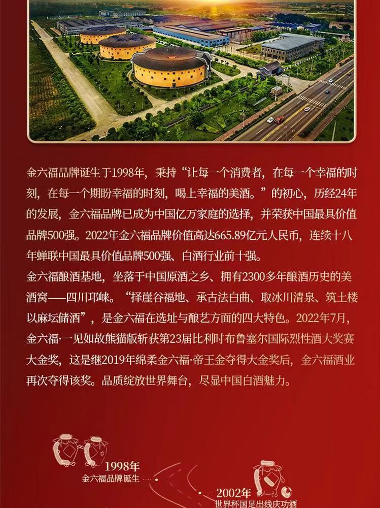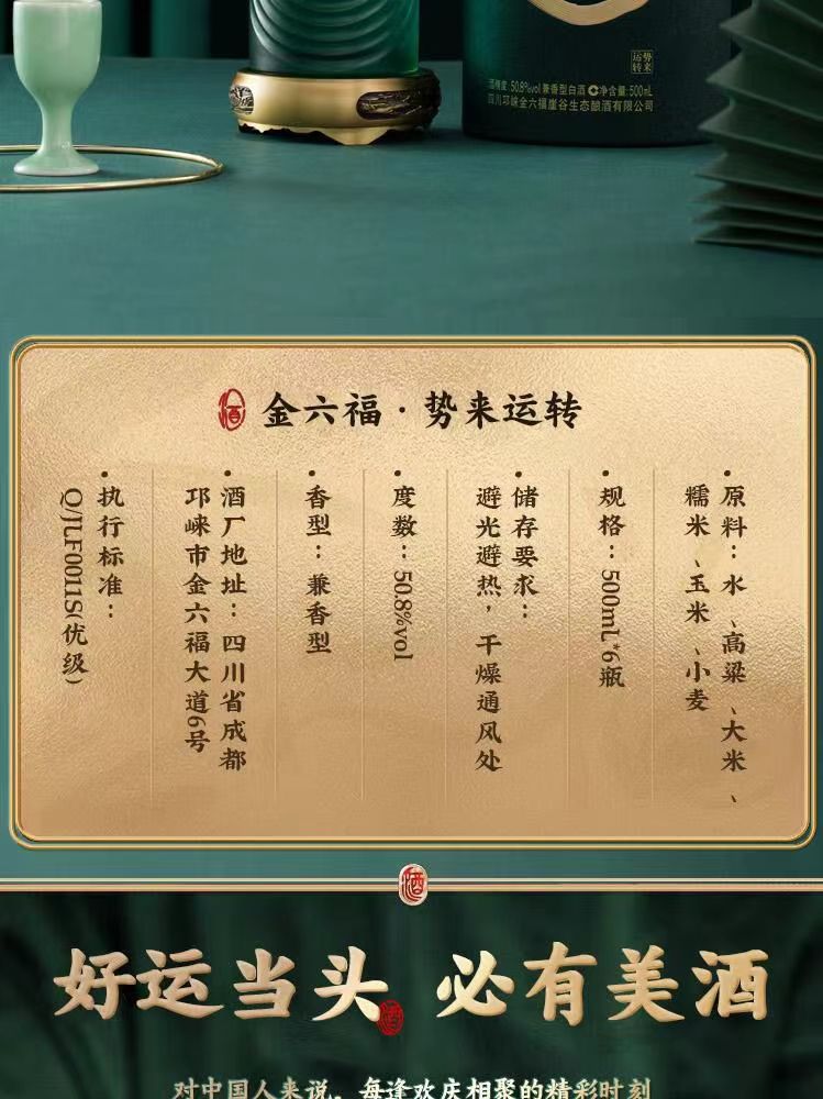 金六福 势来运转 50.8度 兼香型白酒 纯粮酿造 送礼佳品 500ml*6瓶 整箱