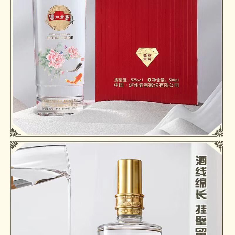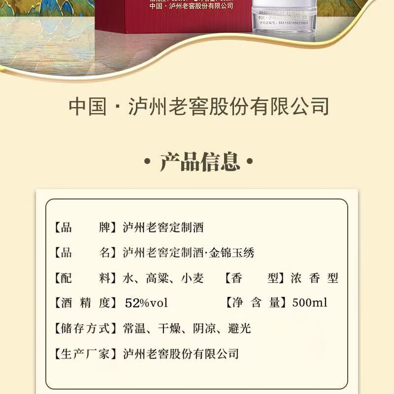 泸州老窖 定制酒 金锦玉绣 52度 浓香型白酒 自饮佳品 送礼宴请 500ml*6瓶 整箱