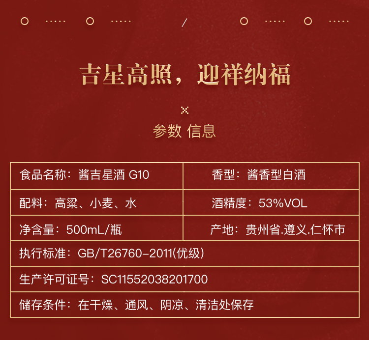 酱吉星G10 53度 酱香型白酒 500ml*6瓶 整箱 送礼