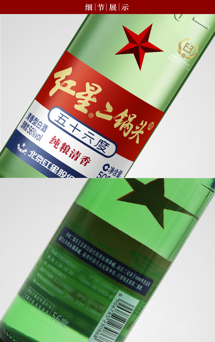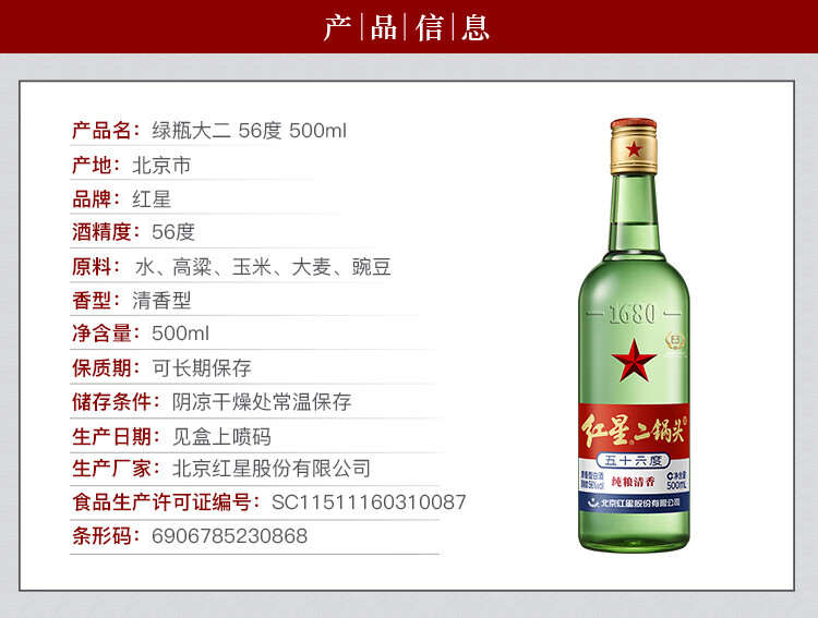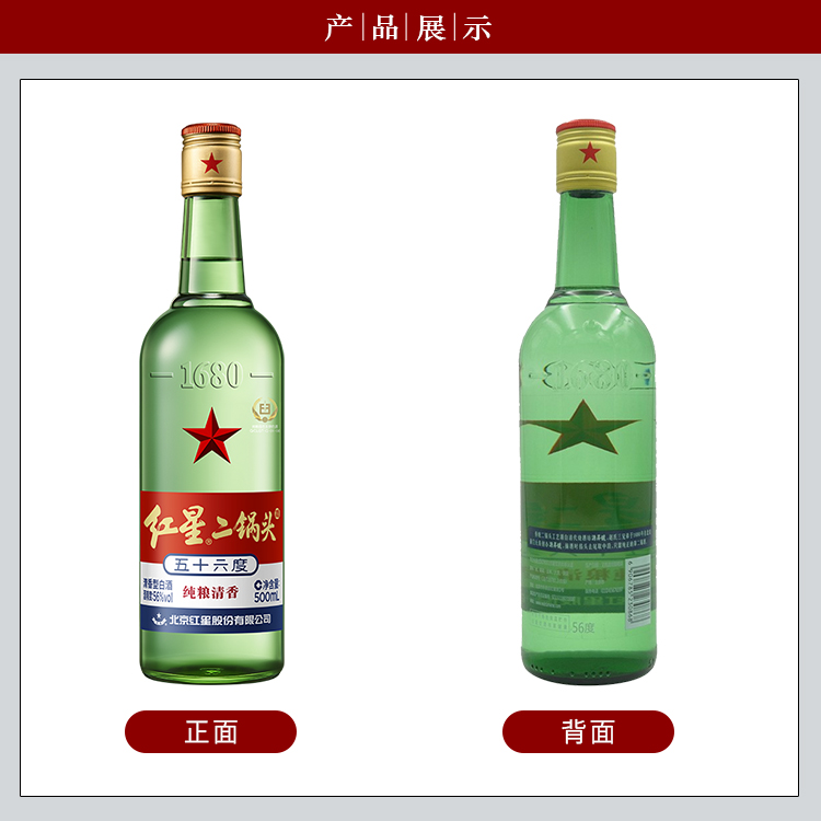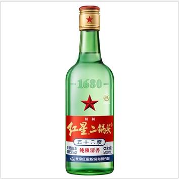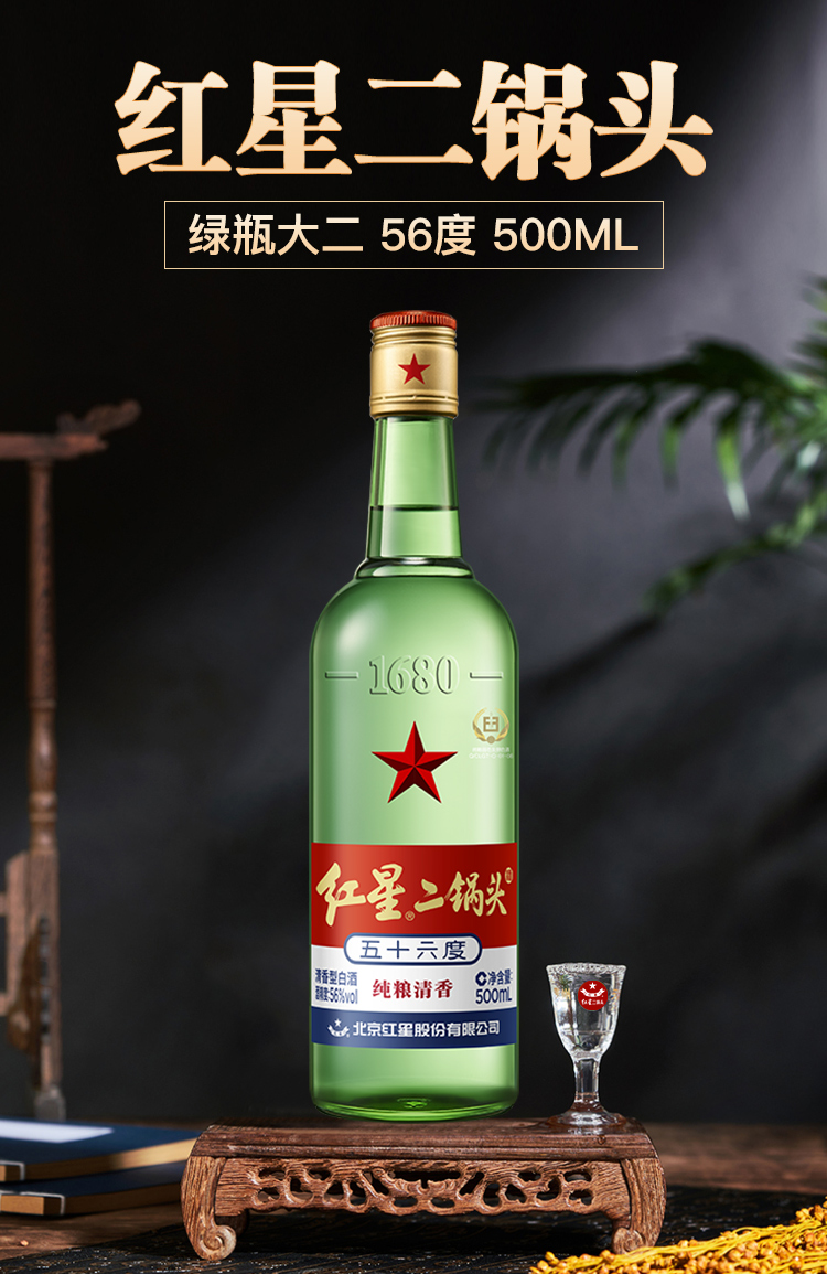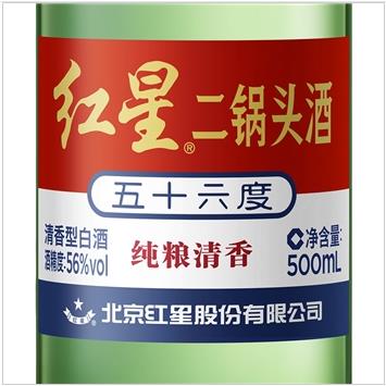 红星二锅头 绿瓶大二 优级清香型白酒 纯粮酿造 白酒 56度 500mL*12瓶 箱装