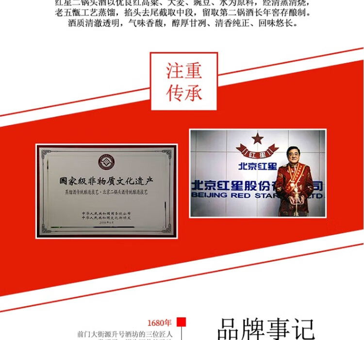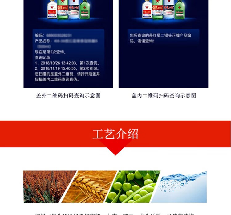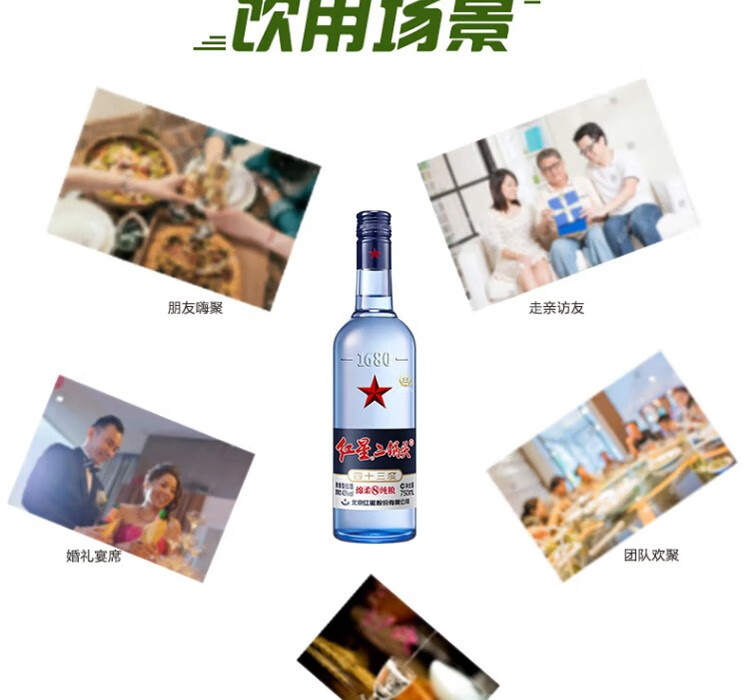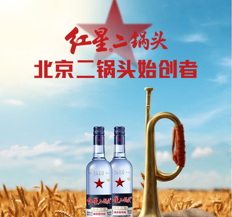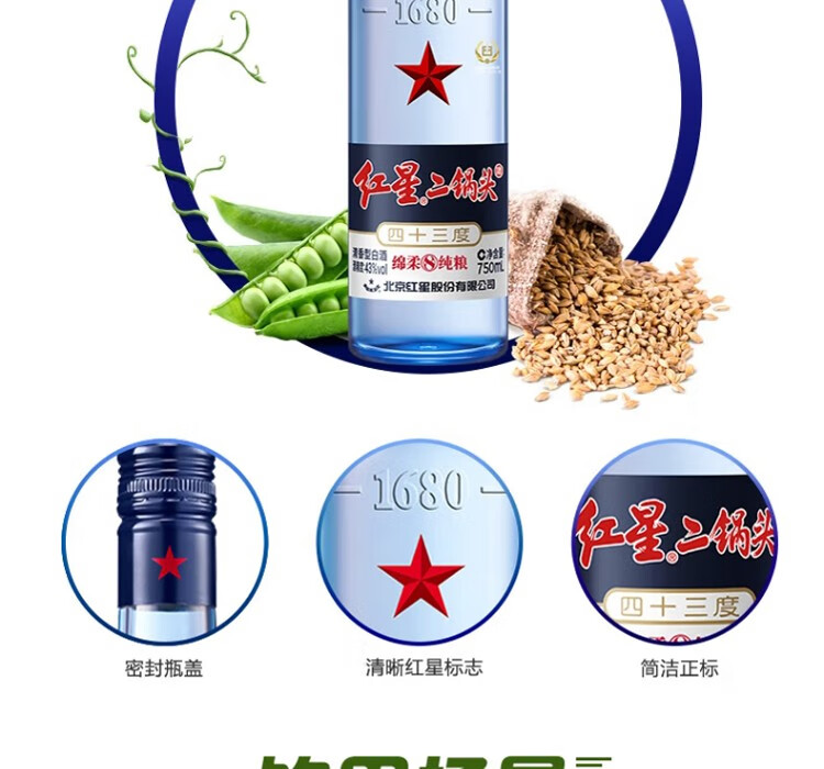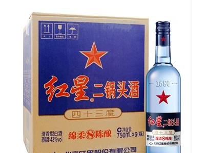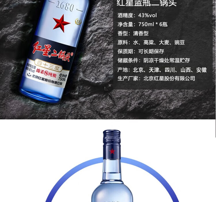 红星二锅头蓝瓶绵柔八陈酿纯粮 清香型白酒 43度 750ml*6瓶 整箱