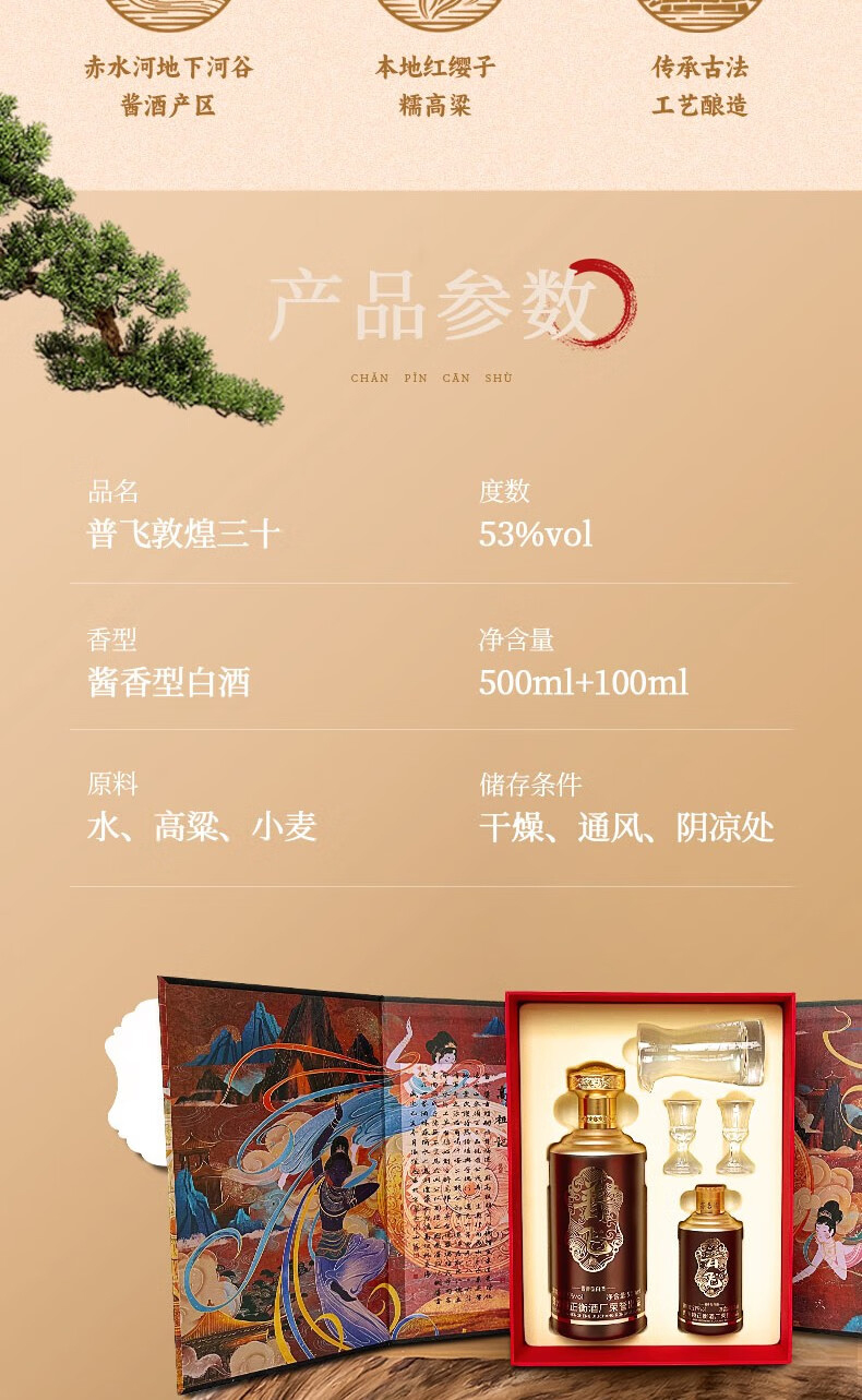 普飞酒 敦煌三十 赖正衡 53度 酱香型白酒 组合装 500ml+100ml*1盒