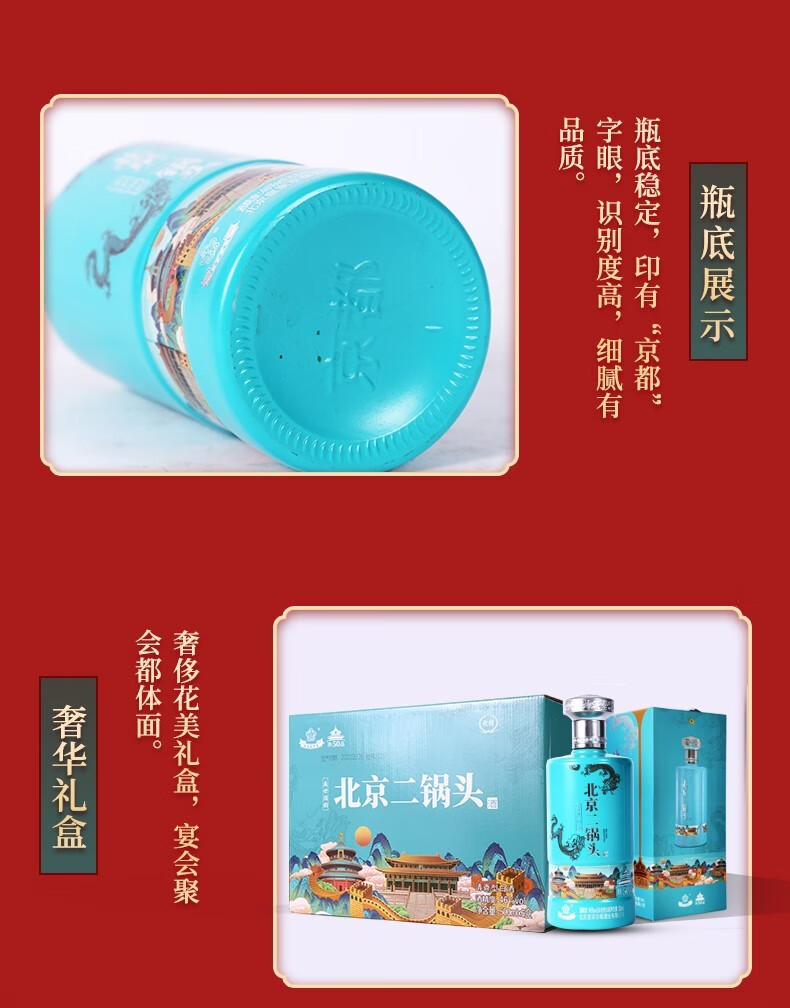 京都北京二锅头 盛世国韵 46度 优级清香白酒 500ml*6瓶 整箱