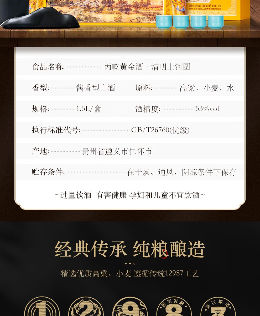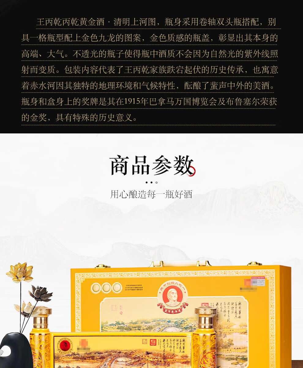 丙乾黄金酒 王丙乾清明上河图 53度 酱香型白酒 送礼佳品 1.5L*1坛 礼盒装