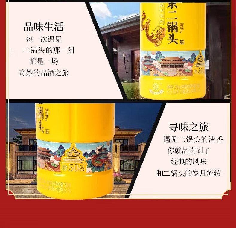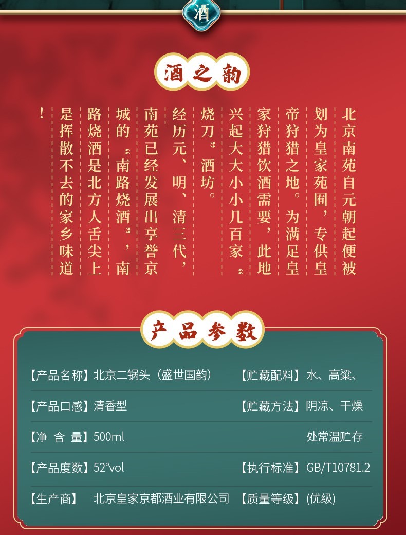 京都二锅头 北京特产 盛世国韵 52度 清香型白酒 500ml*6瓶 整箱装