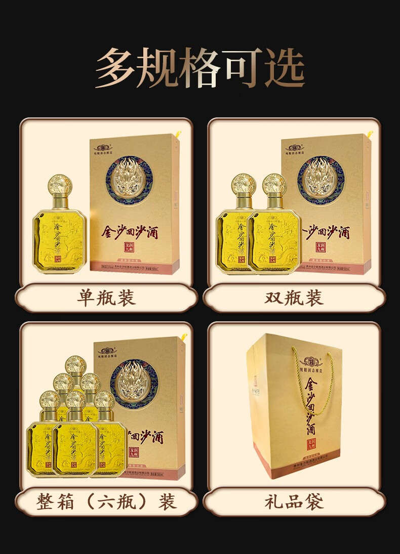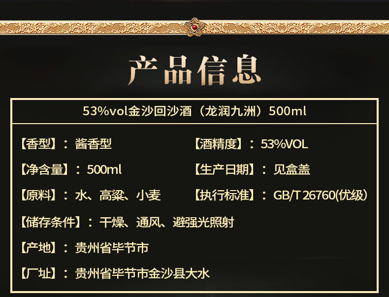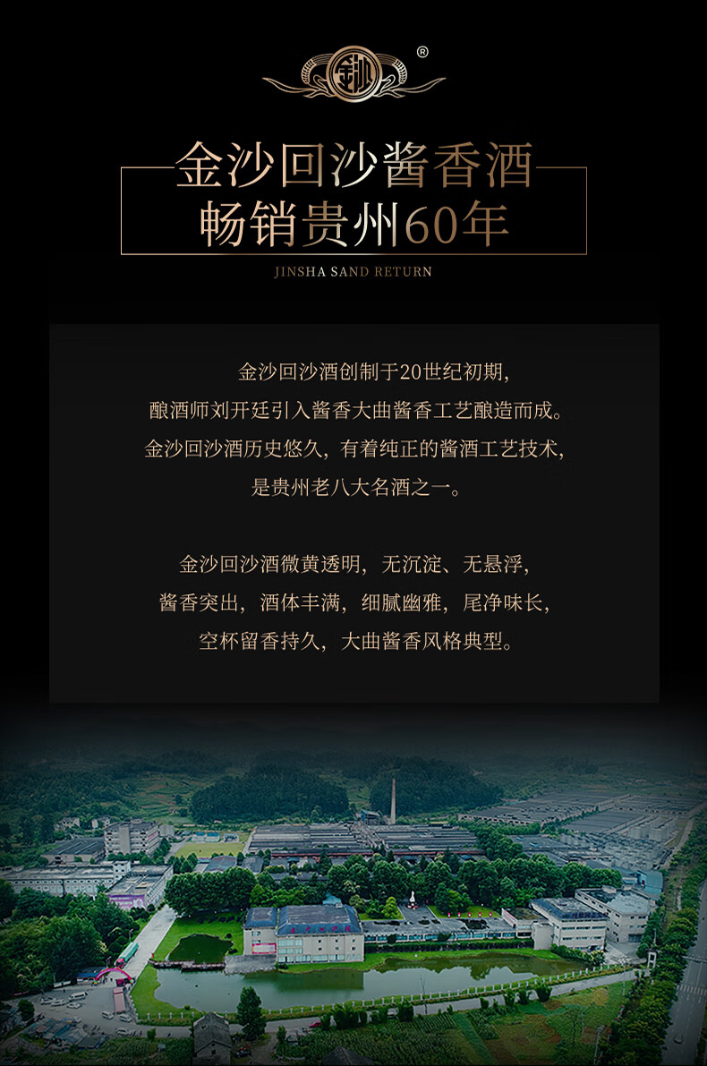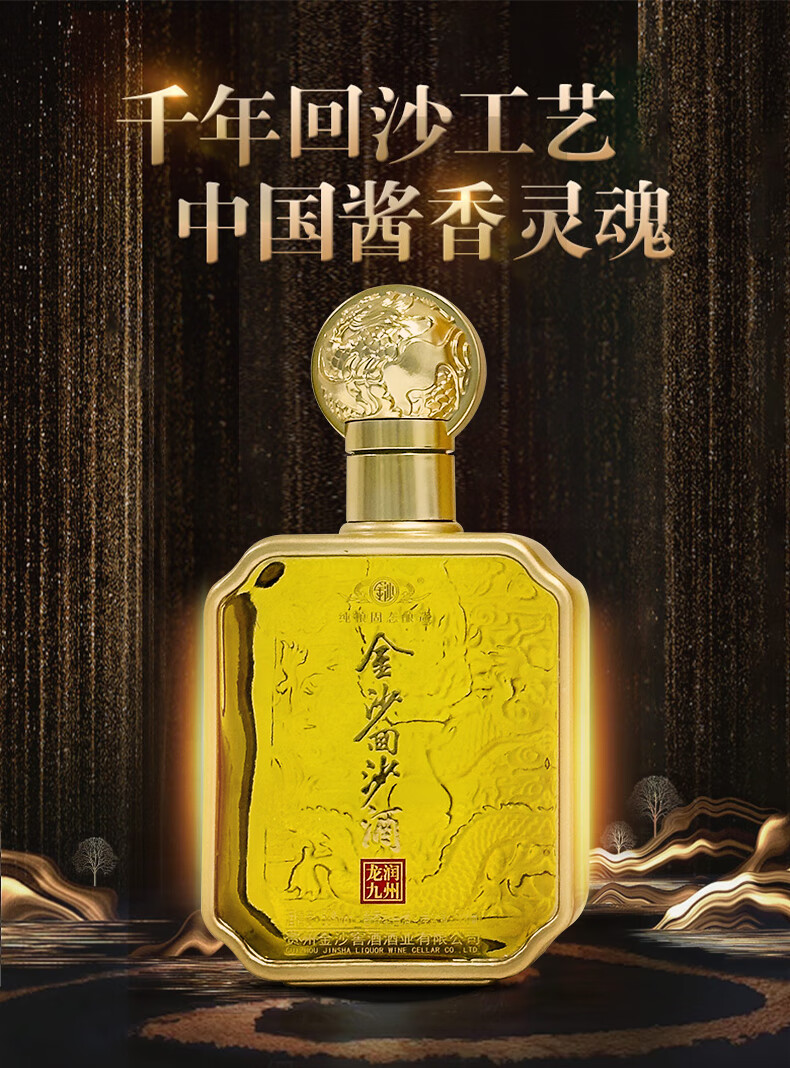 金沙回沙酒 龙润九州 酱香型高度白酒 53度 500mL*6瓶 整箱