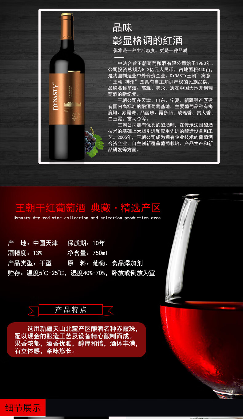 王朝(Dynasty)典藏·精选 国产干红葡萄酒 12%VOL 750ml*6盒 整箱