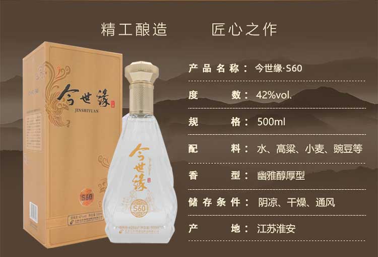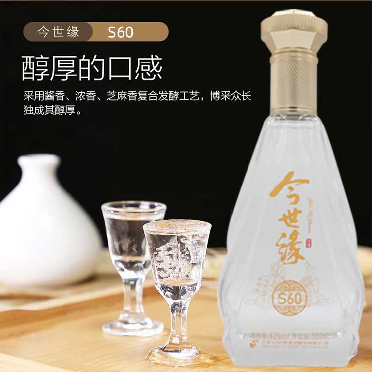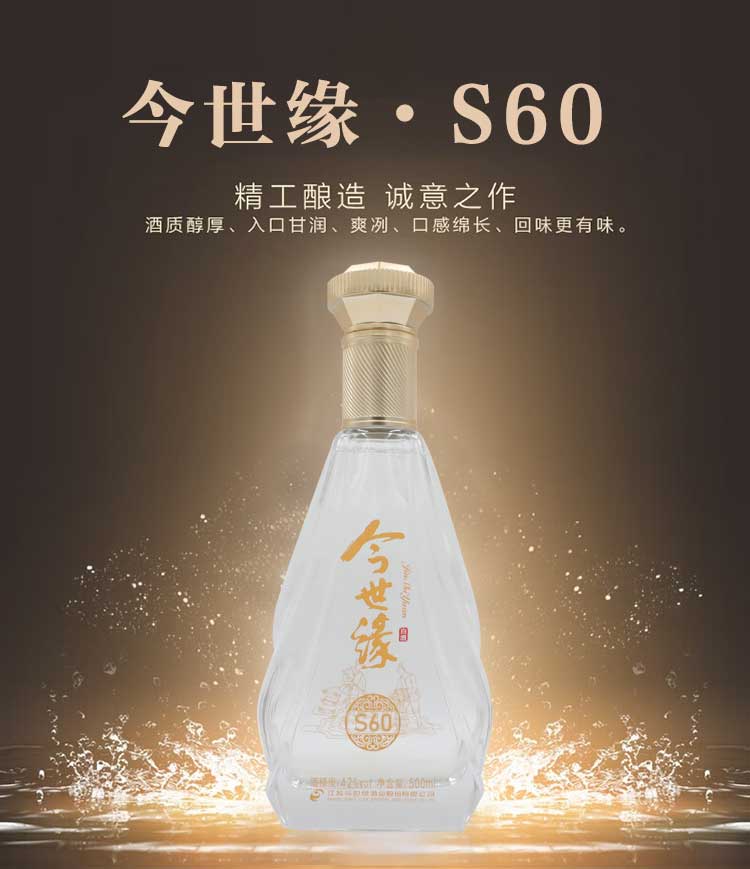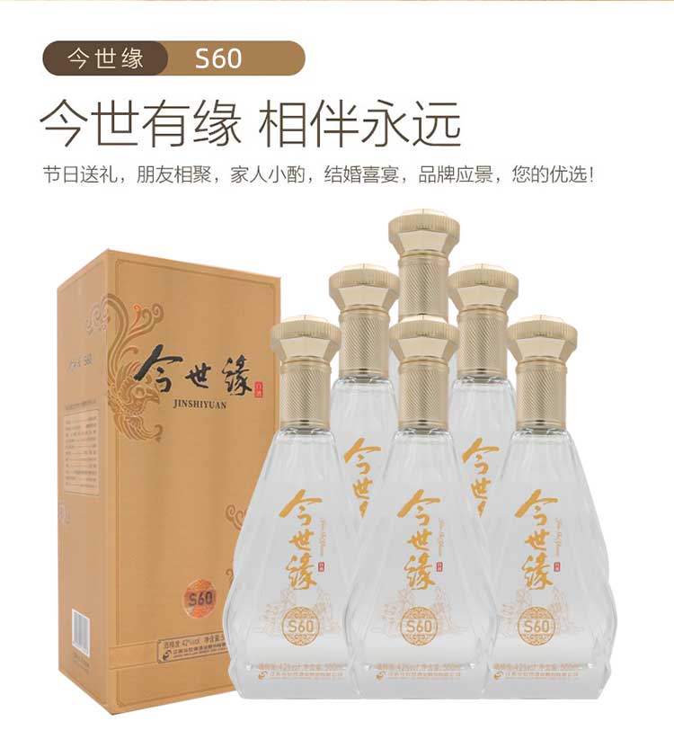 今世缘 S60 42度 优雅醇厚型白酒 纯粮酿造 500ml*6瓶 整箱