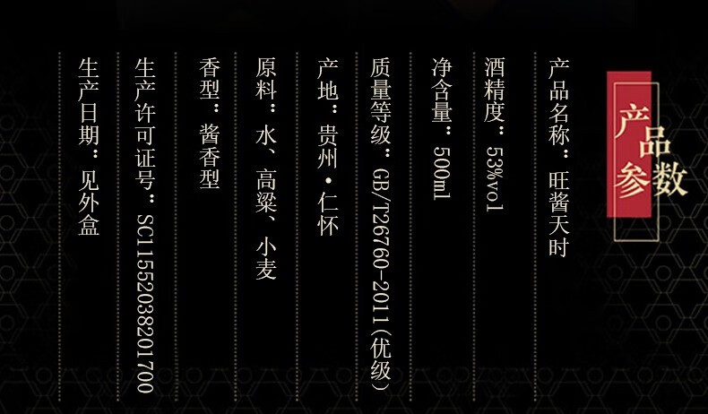 贵州茅台镇 旺酱天时酒 53度酱香型白酒 送礼用酒 500ml*4瓶 整箱