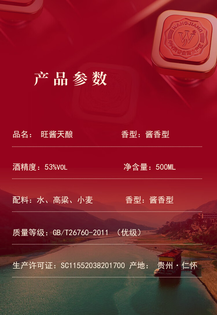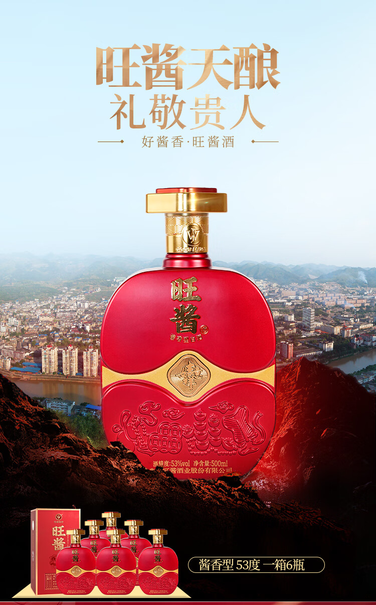 贵州茅台镇 旺酱天酿酒 53度酱香型白酒 送礼用酒 500ml*6瓶 整箱