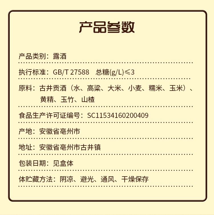 古井贡酒 黄精酒 露酒 42度 献给国人的健康型白酒 500mL*6瓶 整箱装
